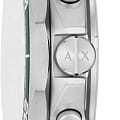 Мужские наручные часы хронографХронографФункция позволяет измерять отрезки времени с особой точностью: часы, минуты, секунды. Верным признаком хронографа является наличие на циферблате 3 дополнительных окошек-счётчиков. с минеральным стекломМинеральное стеклоМинеральное стекло представляет собой искусственно выращенный минерал кварца. Такое стекло отличается особой устойчивостью к повреждениям и царапинам. Уступает по некоторым качествам сапфировому стеклу. Armani Exchange Dante AX1957, кварцевый механизм с высокой точностью. Класс водозащиты: 100 метров, позволит плавать, нырять и заниматься другими водными видами спорта. Корпус часов изготовлен из нержавеющей стали. Стальной браслет на раскладной застёжкеРаскладная застёжкаТакой тип застёжки используется только на браслетах из металла. Она никогда не раскрывается полностью, происходит разделение на 2 и более частей. Раскладывающая застёжка снизит вероятность потери часов к минимуму.. Вращающийся безельБезельВнешний ободок, закрепляющий стекло. В спортивных часах так называется поворотное кольцо с делениями на циферблате, выполняет роль таймера – замеряет отрезки времени на шкале. Неподвижный безель – элемент декора. Однонаправленно вращающийся безель на дайверских часах позволяет фиксировать моменты погружения и выныривания на поверхность.. Текстурированный циферблат с метками в виде штрихов.