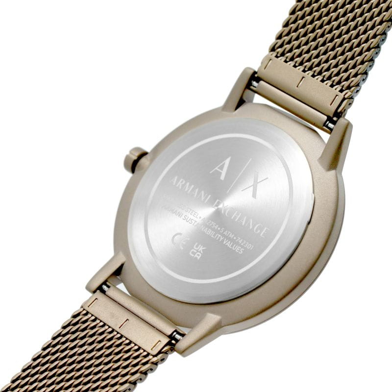 Мужские наручные кварцевые часы Armani Exchange Cayde AX2754, кварцевый механизм с высокой точностью. Класс водозащиты: 50 метров, позволит защитить корпус от случайных брызг или капель дождя. Корпус часов изготовлен из стали с IP-покрытиемIP-покрытиеМетод ионного напыления. Демонстрирует повышенную устойчивость к истиранию, окислению и химическим веществам. Под воздействием высокого давления и температуры около 1500°C молекулы металла надёжно соединяются с частицами корпуса часов.. Стальной браслет на раскладной застёжкеРаскладная застёжкаТакой тип застёжки используется только на браслетах из металла. Она никогда не раскрывается полностью, происходит разделение на 2 и более частей. Раскладывающая застёжка снизит вероятность потери часов к минимуму. с IP-покрытиемIP-покрытиеМетод ионного напыления. Демонстрирует повышенную устойчивость к истиранию, окислению и химическим веществам. Под воздействием высокого давления и температуры около 1500°C молекулы металла надёжно соединяются с частицами корпуса часов.. Минеральное стеклоМинеральное стеклоМинеральное стекло представляет собой искусственно выращенный минерал кварца. Такое стекло отличается особой устойчивостью к повреждениям и царапинам. Уступает по некоторым качествам сапфировому стеклу. устойчивое к мелким механическим повреждениям.