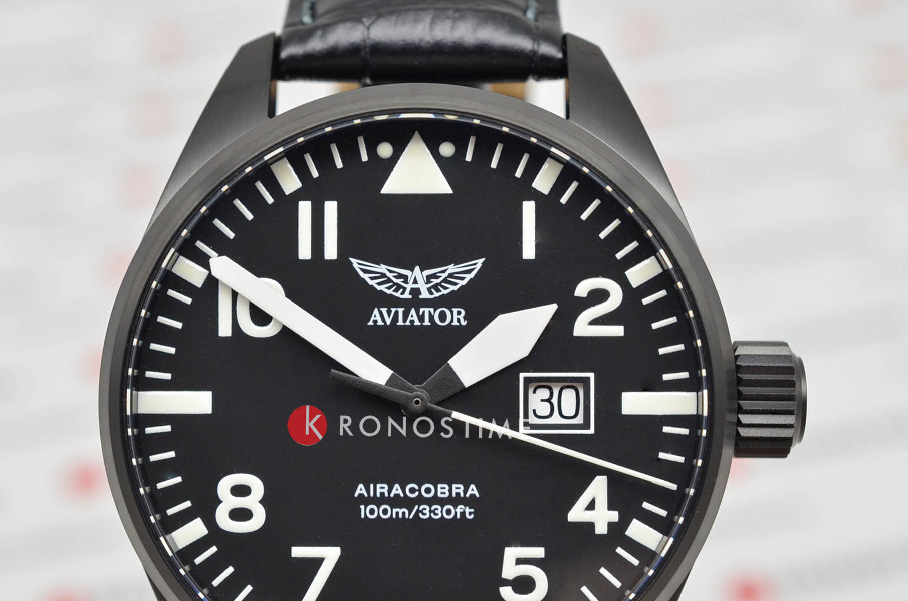 Aviator Airacobra V.1.22.5.148.4 — швейцарские часы в классике авиадизайна, сочетающие безупречную читаемость и высокую надёжность. Корпус диаметром 42 мм выполнен из нержавеющей стали с PVD-покрытиемPVDУльтратонкое покрытие наносится в технике вакуумного напыления, сочетает в себе нитрид титана особой прочности со слоем золота или оксида хрома. Несёт в себе декоративную или защитную функцию. — это придаёт модели благородный и уверенный облик.