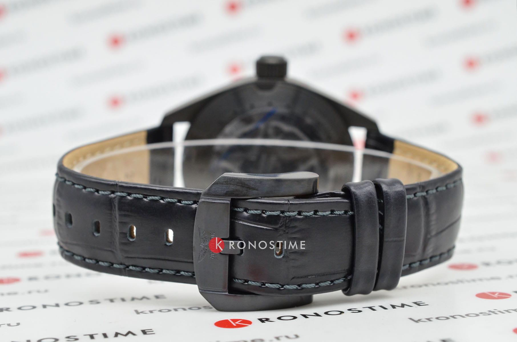 Матовый циферблат с крупными арабскими цифрами, широкими стрелками и контрастной шкалой минут обеспечивает точную и быструю считываемость информации — как и положено настоящим пилотским часам. У отметки «3 часа» — окошко даты. Часовые метки и стрелки покрыты люминесцентным покрытиемЛюминесцентное покрытиеПозволяет считывать показания времени в темноте. Производители наносят на стрелки, часовые индексы, безель или поверхность циферблата светонакопительный состав, дающий холодное свечение. Superluminova, позволяющим легко определять время даже в тёмное время суток.