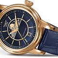 Циферблат в стиле Art Deco украшает усложнение фаз Луны в верхней половине, обрамлённой тонким кольцом облаков. Отмечено окно даты в положении «6 часов». Стрелки и накладные метки обработаны люминесцентным покрытиемЛюминесцентное покрытиеПозволяет считывать показания времени в темноте. Производители наносят на стрелки, часовые индексы, безель или поверхность циферблата светонакопительный состав, дающий холодное свечение. Superluminova — для уверенного считывания в темноте. Поверхность защищена сапфировым стекломСапфировое стеклоПрочный и надёжный материал из кристалла сапфира синтетического происхождения, характеризующийся особой твёрдостью и устойчивостью к царапинам и повреждениям. с антибликовым покрытием.