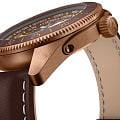 Aviator Airacobra GMT V.1.37.8.306.4 — сбалансированный швейцарский пилотский GMT, сочетающий техническую строгость с удобными функциями для путешествий. Корпус диаметром 42.8 мм и поворотный безельБезельВнешний ободок, закрепляющий стекло. В спортивных часах так называется поворотное кольцо с делениями на циферблате, выполняет роль таймера – замеряет отрезки времени на шкале. Неподвижный безель – элемент декора. Однонаправленно вращающийся безель на дайверских часах позволяет фиксировать моменты погружения и выныривания на поверхность. с керамической вставкой из нержавеющей стали 316 L с PVD-покрытиемPVDУльтратонкое покрытие наносится в технике вакуумного напыления, сочетает в себе нитрид титана особой прочности со слоем золота или оксида хрома. Несёт в себе декоративную или защитную функцию. обеспечивает уверенное ощущение надёжности, а герметичность до 100 м защищает при любой погоде. Циферблат отличается детальной функциональностью: в центре — крупные арабские цифры и стрелки, покрытые люминесцентным покрытиемЛюминесцентное покрытиеПозволяет считывать показания времени в темноте. Производители наносят на стрелки, часовые индексы, безель или поверхность циферблата светонакопительный состав, дающий холодное свечение. Superluminova, обеспечивающими мгновенное считывание времени даже в темноте. На «3 часах» — окошко даты, а индикатор второго часового пояса (GMT) удобно расположен на «9 часах». Безель с градусной шкалой для секунд — идеален для расчёта времени пути или времени прибытия. Циферблат защищён сапфировым стекломСапфировое стеклоПрочный и надёжный материал из кристалла сапфира синтетического происхождения, характеризующийся особой твёрдостью и устойчивостью к царапинам и повреждениям. с антибликовым покрытиемАнтибликовое покрытиеСлой оксида металла в 0,13-0,3 микрон, благодаря которому стекло часов не бликует и не отражает свет. Антибликовое покрытие уменьшает отражение света в 10 раз, обеспечивая отличную читаемость показателей циферблата., гарантирующим чёткий обзор без отражений. Кожаный ремень со стандартной застежкой сочетает в себе комфорт, элегантность и практичность. Airacobra GMT — инструментальное сочетание часовой точности, удобной функциональности GMT и авиационной эстетики, предназначенное для тех, кто ценит практичность и стиль в равной мере.