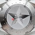 У модели присутствуют дата и точный откидной механизм завинчивающейся заводной головки и задней крышки, обеспечивающий надёжную водозащиту до 100 м и защиту от ударов — корпус обладает высокой ударопрочностьюУдаропрочный корпусМеханизм заключён в корпус, выполненный из современных материалов, устойчивых к ударам, механическим повреждениям и падению с высоты: инновационный пластик, карбон, нержавеющая сталь, титан..
