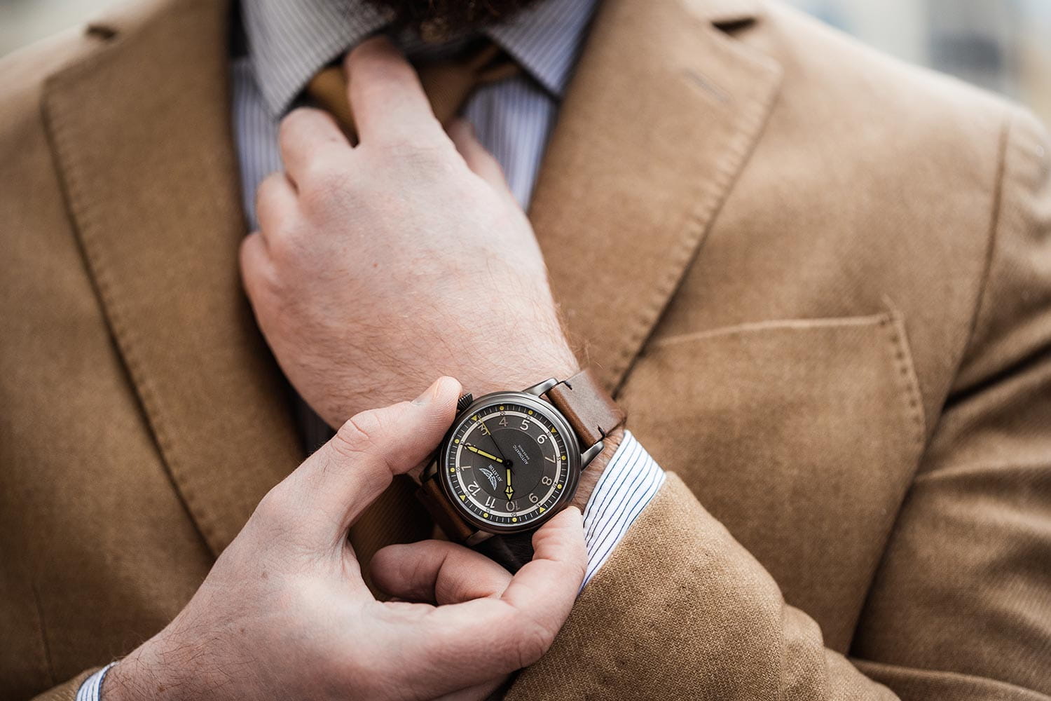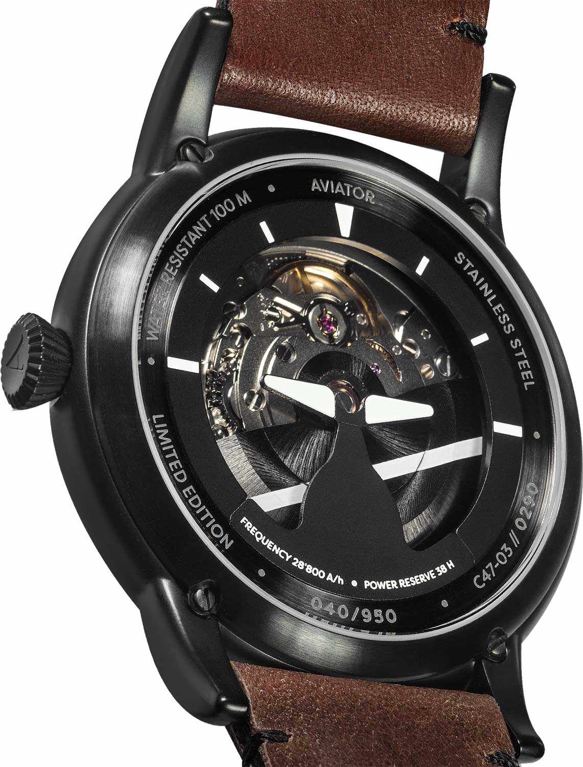 Aviator Douglas V.3.31.5.228.4 — швейцарские часы в классике авиадизайна, сочетающие безупречную читаемость и высокую надёжность. Лимитированная серия. Корпус диаметром 45 мм выполнен из нержавеющей стали с PVD-покрытиемPVDУльтратонкое покрытие наносится в технике вакуумного напыления, сочетает в себе нитрид титана особой прочности со слоем золота или оксида хрома. Несёт в себе декоративную или защитную функцию. черного цвета. Накладные метки выполнены в виде арабских цифр. Часовые метки и стрелки покрыты люминесцентным покрытиемЛюминесцентное покрытиеПозволяет считывать показания времени в темноте. Производители наносят на стрелки, часовые индексы, безель или поверхность циферблата светонакопительный состав, дающий холодное свечение. Superluminova, позволяющим легко определять время даже в тёмное время суток. Поверхность защищена прочным сапфировым стекломСапфировое стеклоПрочный и надёжный материал из кристалла сапфира синтетического происхождения, характеризующийся особой твёрдостью и устойчивостью к царапинам и повреждениям. с антибликовым покрытием, устойчивым к царапинам. Сердце модели — швейцарский механизм Sellita SW 200, известный своей точностью и долговечностью. Калибр управляется регулятором Etachron, который обеспечивает высокую точность хода как на земле, так и над землей. Водозащита 100 метров, позволит плавать, нырять и заниматься другими водными видами спорта. Завинчивающаяся головка и задняя крышка обеспечивают уверенную ударопрочностьУдаропрочный корпусМеханизм заключён в корпус, выполненный из современных материалов, устойчивых к ударам, механическим повреждениям и падению с высоты: инновационный пластик, карбон, нержавеющая сталь, титан. и надёжную защиту от влаги и пыли. В механизме 26 камней, запас хода 38 часов. Модель дополнена кожаным ремешком с выразительной текстурой и классическим стилем, закреплённым с помощью классической застежки — для максимального комфорта и лёгкости в повседневном использовании. Прозрачная задняя крышка украшена имитацией функции контроля управления хвоста самолета. Ротор механизма указывает на градусы, как в авиационном приборе триммер. Aviator — это образец лётной точности, инженерной чёткости и сдержанной роскоши, идеально подходящий для тех, кто ценит функциональность и уверенность в каждом элементе.