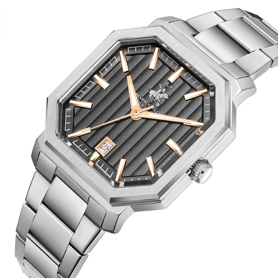 Американские мужские часы Beverly Hills Polo Club BP3793X.360 - это стильный мужской аксессуар, который сочетает элегантный дизайн и практичность. Корпус выполнен из нержавеющей стали серебристого цвета, диаметром 38 мм, что обеспечивает долговечность и утончённый внешний вид. Надежное минеральное стеклоМинеральное стеклоМинеральное стекло представляет собой искусственно выращенный минерал кварца. Такое стекло отличается особой устойчивостью к повреждениям и царапинам. Уступает по некоторым качествам сапфировому стеклу. с сапфировым покрытием защищает циферблат от царапин и обеспечивает долговечность. Модель оснащена кварцевым механизмом, обеспечивающим высокую точность хода. Стальной браслет на застёжке-бабочке с кнопкамиЗастёжка "бабочка"Такой вид застёжки дополняется предохранителями, помогающими избежать случайного раскрытия браслета. Обладают изящным исполнением. обеспечивает комфортное ношение. Окошко даты находится в положении 6 часов. Стрелки и метки с люминесцентным покрытиемЛюминесцентное покрытиеПозволяет считывать показания времени в темноте. Производители наносят на стрелки, часовые индексы, безель или поверхность циферблата светонакопительный состав, дающий холодное свечение. позволяют легко считывать время даже в условиях недостаточного освещения. Водозащита 50 метров позволит защитить корпус от случайных брызг или капель дождя. Эта модель – отличный выбор для тех, кто ищет сочетание стиля, качества и функциональности. Часы станут не только полезным аксессуаром, но и выразительным элементом вашего имиджа.