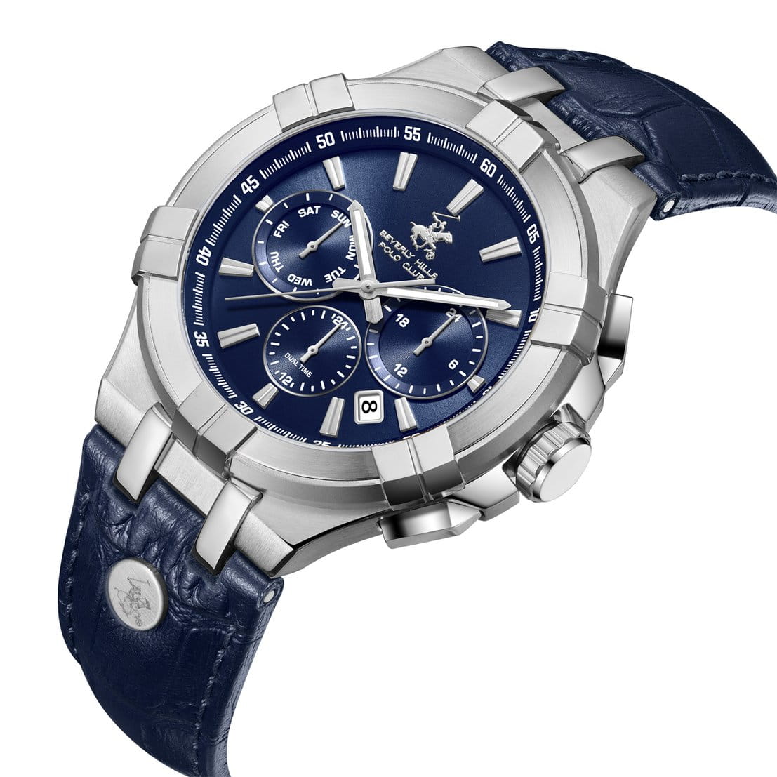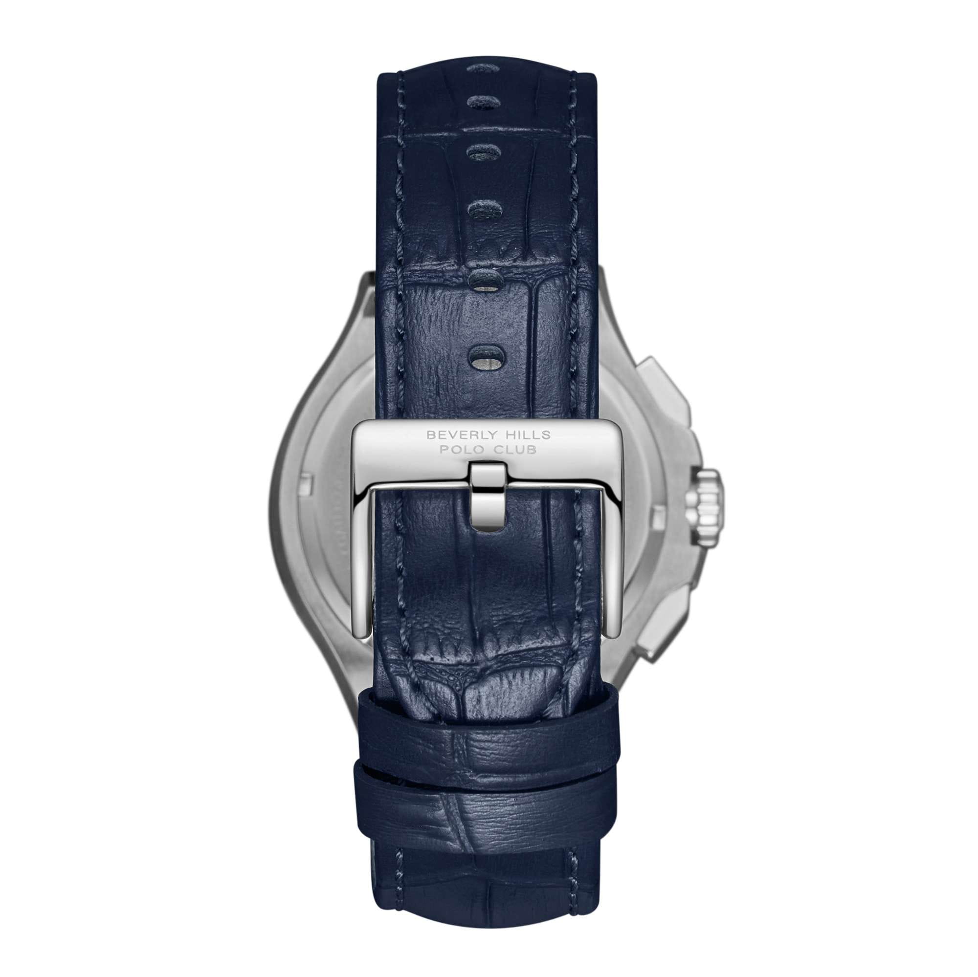 Мужские кварцевые часы Beverly Hills Polo Club — это оригинальный аксессуар для стильного образа. Корпус диаметром 44 мм выполнен из стали 316L. БезельБезельВнешний ободок, закрепляющий стекло. В спортивных часах так называется поворотное кольцо с делениями на циферблате, выполняет роль таймера – замеряет отрезки времени на шкале. Неподвижный безель – элемент декора. Однонаправленно вращающийся безель на дайверских часах позволяет фиксировать моменты погружения и выныривания на поверхность. неподвижный, из нержавеющей стали и узором «шесть когтей». Циферблат синего цвета оформлен штрихами, стрелками и тремя вынесенными субциферблатами: для отображения дня недели, даты и 24-часового формата времени. Стрелки с люминесцентным покрытиемЛюминесцентное покрытиеПозволяет считывать показания времени в темноте. Производители наносят на стрелки, часовые индексы, безель или поверхность циферблата светонакопительный состав, дающий холодное свечение., обеспечивающим хорошую читаемость в темноте. Циферблат защищён минеральным стекломМинеральное стеклоМинеральное стекло представляет собой искусственно выращенный минерал кварца. Такое стекло отличается особой устойчивостью к повреждениям и царапинам. Уступает по некоторым качествам сапфировому стеклу. с сапфировым покрытием. Часы оснащены ремешком из натуральной кожи на классической пряжке. Водонепроницаемость 50 м позволяет использовать часы при мытье рук или в дождь. Идеальный выбор для тех, кто ценит американское качество и универсальный дизайн.