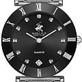 Женские кварцевые часы Beverly Hills Polo Club — это символ элегантного стиля и безупречного вкуса. Корпус диаметром 30 мм выполнен из суперметалла. БезельБезельВнешний ободок, закрепляющий стекло. В спортивных часах так называется поворотное кольцо с делениями на циферблате, выполняет роль таймера – замеряет отрезки времени на шкале. Неподвижный безель – элемент декора. Однонаправленно вращающийся безель на дайверских часах позволяет фиксировать моменты погружения и выныривания на поверхность. из суперметалла с IP-покрытиемIP-покрытиеМетод ионного напыления. Демонстрирует повышенную устойчивость к истиранию, окислению и химическим веществам. Под воздействием высокого давления и температуры около 1500°C молекулы металла надёжно соединяются с частицами корпуса часов.. Циферблат чёрного цвета оформлен римскими цифрами, стрелками и инкрустирован одним синтетическим бриллиантом. Циферблат защищён минеральным стекломМинеральное стеклоМинеральное стекло представляет собой искусственно выращенный минерал кварца. Такое стекло отличается особой устойчивостью к повреждениям и царапинам. Уступает по некоторым качествам сапфировому стеклу. с сапфировым покрытием. Часы оснащены стальным браслетом на застёжке «бабочка» с кнопкамиЗастёжка "бабочка"Такой вид застёжки дополняется предохранителями, помогающими избежать случайного раскрытия браслета. Обладают изящным исполнением. . Водонепроницаемость 30 м позволяет использовать часы в повседневных условиях. Идеальный выбор для тех, кто ценит американское качество и универсальный дизайн.