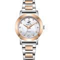Женские кварцевые часы Beverly Hills Polo Club — это символ безупречного вкуса и роскоши. Корпус диаметром 28 мм выполнен из стали 316L. БезельБезельВнешний ободок, закрепляющий стекло. В спортивных часах так называется поворотное кольцо с делениями на циферблате, выполняет роль таймера – замеряет отрезки времени на шкале. Неподвижный безель – элемент декора. Однонаправленно вращающийся безель на дайверских часах позволяет фиксировать моменты погружения и выныривания на поверхность. с IP-покрытиемIP-покрытиеМетод ионного напыления. Демонстрирует повышенную устойчивость к истиранию, окислению и химическим веществам. Под воздействием высокого давления и температуры около 1500°C молекулы металла надёжно соединяются с частицами корпуса часов.. Циферблат перламутрового цвета оформлен точками, стрелками и инкрустирован одним синтетическим бриллиантом. Циферблат защищён минеральным стекломМинеральное стеклоМинеральное стекло представляет собой искусственно выращенный минерал кварца. Такое стекло отличается особой устойчивостью к повреждениям и царапинам. Уступает по некоторым качествам сапфировому стеклу. с сапфировым покрытием. Часы оснащены стальным браслетом с частичным IP-покрытиемIP-покрытиеМетод ионного напыления. Демонстрирует повышенную устойчивость к истиранию, окислению и химическим веществам. Под воздействием высокого давления и температуры около 1500°C молекулы металла надёжно соединяются с частицами корпуса часов. цвета жёлтого золота на застёжке «бабочка» с кнопкамиЗастёжка "бабочка"Такой вид застёжки дополняется предохранителями, помогающими избежать случайного раскрытия браслета. Обладают изящным исполнением. . Водонепроницаемость 30 м позволяет использовать часы в повседневных условиях. Идеальный выбор для тех, кто ценит американское качество и универсальный дизайн.