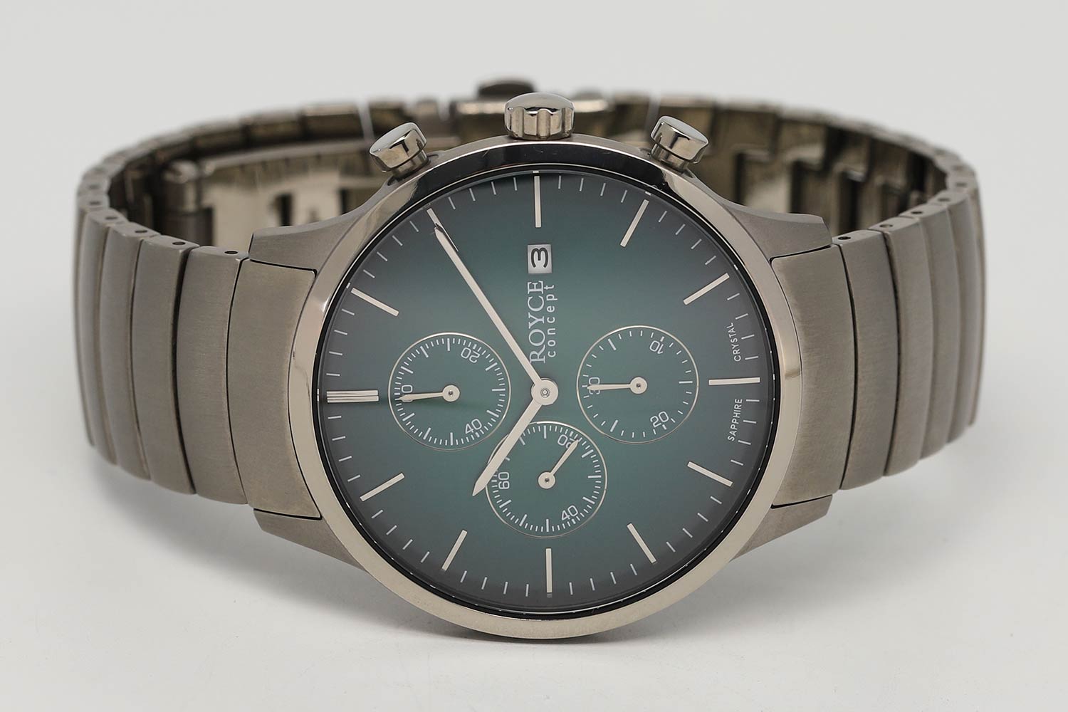 Мужские немецкие титановые часы-хронографХронографФункция позволяет измерять отрезки времени с особой точностью: часы, минуты, секунды. Верным признаком хронографа является наличие на циферблате 3 дополнительных окошек-счётчиков. с секундомеромСекундомерСекундоме́р — прибор, способный измерять интервалы времени с точностью до долей секунды. Boccia Titanium Circle-Oval 3743-01, кварцевый механизм с высокой точностью. Сапфировое стеклоСапфировое стеклоПрочный и надёжный материал из кристалла сапфира синтетического происхождения, характеризующийся особой твёрдостью и устойчивостью к царапинам и повреждениям. устойчивое к появлению царапин, обладающее высокой прозрачностью. Корпус изготовлен из титана. На цифрблате расположены три дополнительных индикатора и окошко даты. 12-ти и 24-х часовой формат времени. Класс водозащиты: 100 метров, позволит плавать, нырять и заниматься другими водными видами спорта. Титановый браслет на раскладной застёжкеРаскладная застёжкаТакой тип застёжки используется только на браслетах из металла. Она никогда не раскрывается полностью, происходит разделение на 2 и более частей. Раскладывающая застёжка снизит вероятность потери часов к минимуму..