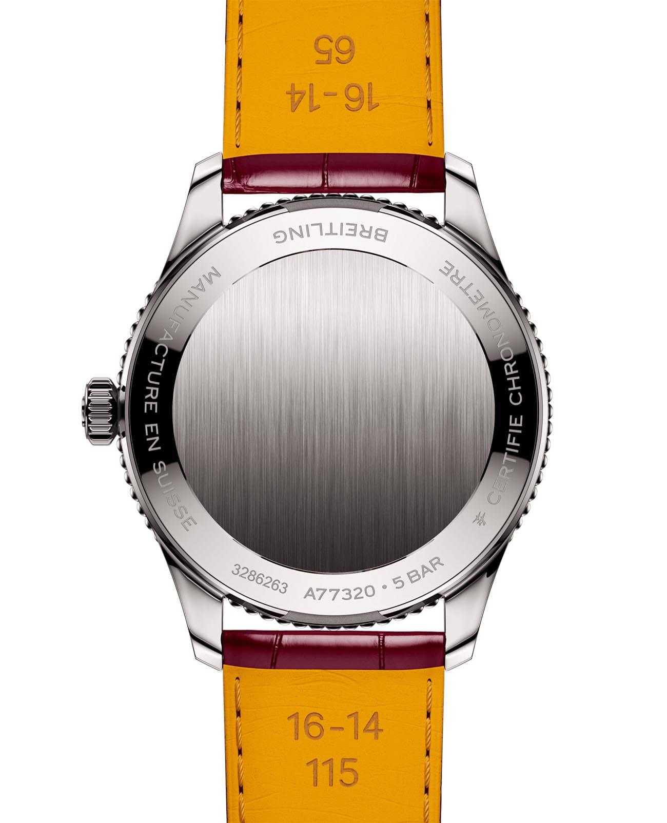 Швейцарские унисекс часы-хронометр Breitling Navitimer Automatic 36 A77320E61A2P2, механический механизм (автоматический калибр) с высокой точностью. Сапфировое стеклоСапфировое стеклоПрочный и надёжный материал из кристалла сапфира синтетического происхождения, характеризующийся особой твёрдостью и устойчивостью к царапинам и повреждениям. устойчивое к появлению царапин, обладающее высокой прозрачностью. Класс водозащиты: 50 метров, позволит защитить корпус от случайных брызг или капель дождя. Корпус часов изготовлен из нержавеющей стали. Ремешок из кожи аллигатора с раскладной застёжкойРаскладная застёжкаТакой тип застёжки используется только на браслетах из металла. Она никогда не раскрывается полностью, происходит разделение на 2 и более частей. Раскладывающая застёжка снизит вероятность потери часов к минимуму.. Стрелки с люминесцентным покрытиемЛюминесцентное покрытиеПозволяет считывать показания времени в темноте. Производители наносят на стрелки, часовые индексы, безель или поверхность циферблата светонакопительный состав, дающий холодное свечение.. Циферблат инкрустирован бриллантами.