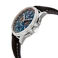 Часы-хронографХронографФункция позволяет измерять отрезки времени с особой точностью: часы, минуты, секунды. Верным признаком хронографа является наличие на циферблате 3 дополнительных окошек-счётчиков.. Механический механизм (автоматический калибр) с высокой точностью. Сапфировое стеклоСапфировое стеклоПрочный и надёжный материал из кристалла сапфира синтетического происхождения, характеризующийся особой твёрдостью и устойчивостью к царапинам и повреждениям. устойчивое к появлению царапин, обладающее высокой прозрачностью. Стрелки с люминесцентным покрытиемЛюминесцентное покрытиеПозволяет считывать показания времени в темноте. Производители наносят на стрелки, часовые индексы, безель или поверхность циферблата светонакопительный состав, дающий холодное свечение.. Класс водозащиты: 100 метров, позволит плавать, нырять и заниматься другими водными видами спорта. Корпус часов изготовлен из нержавеющей стали. Кожаный ремешок с классической застежкой.