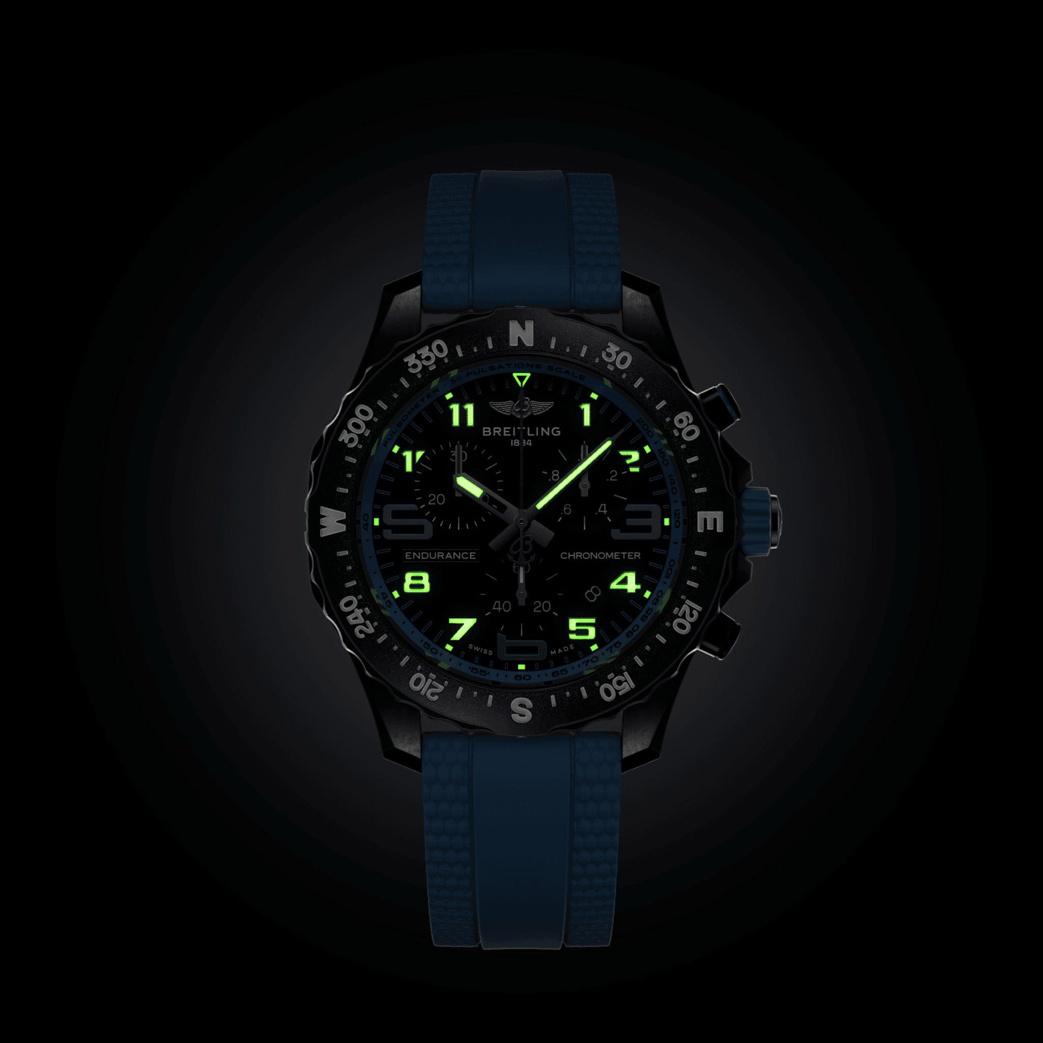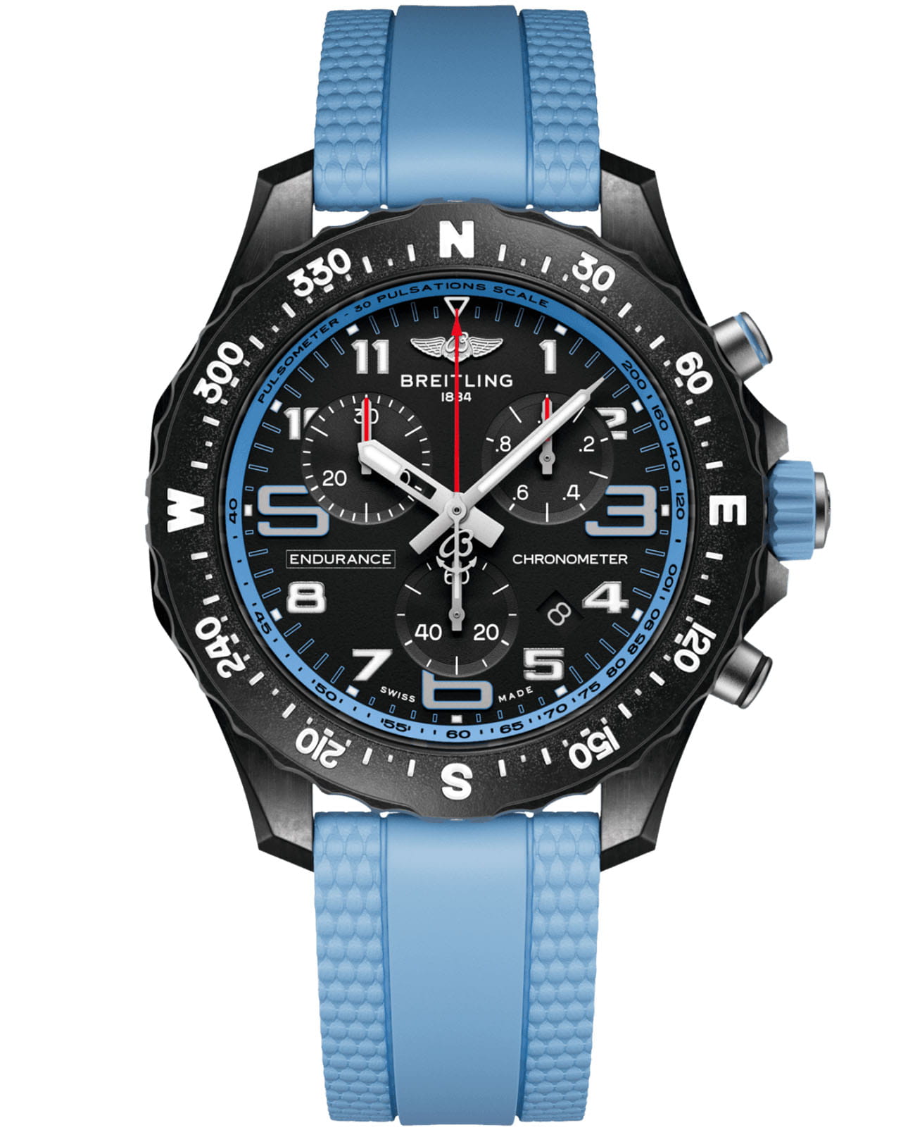 Швейцарские часы Breitling Endurance Pro 38 X83310281B1S1. Корпус часов изготовлен из прочного сверхлегкого материала Breitlight. Класс водозащиты: 100 метров, позволит плавать, нырять и заниматься другими водными видами спорта. Стрелки с люминесцентным покрытиемЛюминесцентное покрытиеПозволяет считывать показания времени в темноте. Производители наносят на стрелки, часовые индексы, безель или поверхность циферблата светонакопительный состав, дающий холодное свечение.. Сапфировое стеклоСапфировое стеклоПрочный и надёжный материал из кристалла сапфира синтетического происхождения, характеризующийся особой твёрдостью и устойчивостью к царапинам и повреждениям. устойчивое к появлению царапин, обладающее высокой прозрачностью. Каучуковый ремешок.