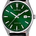 Мужские наручные часы Candino Couple C4622/B сочетают в себе классический дизайн и надежность швейцарского качества. Модель обладает круглым корпусом, изготовленным из нержавеющей стали марки 316L, что обеспечивает высокую устойчивость к коррозии и механическим повреждениям . Корпус оснащен  сапфировым стекломСапфировое стеклоПрочный и надёжный материал из кристалла сапфира синтетического происхождения, характеризующийся особой твёрдостью и устойчивостью к царапинам и повреждениям., которое гарантирует защиту от царапин и других внешних воздействий . Часы имеют кожаный ремешок черного цвета, обеспечивающий комфортное ношение в течение дня . Циферблат зеленого цвета дополнен окном даты, расположенном на позиции «3 часа», что добавляет удобства при повседневном использовании . Часы оснащены кварцевым механизмом, который известен своей точностью и минимальной потребностью в обслуживании. Погрешность хода составляет около 20 секунд в месяц, что гарантирует надежность показаний времени . Водонепроницаемость модели достигает 5 атмосфер (50 метров), что позволяет использовать часы в условиях легкого контакта с водой, например, во время мытья рук или дождя, но не рекомендуется для плавания или дайвинга . Модель Candino Classic C4622/A станет идеальным выбором для ценителей классического стиля и практичности в повседневной жизни.