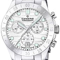 Женские часы Candino Chronos C4783/1 — сочетание элегантности и функциональности для современных женщин. Эти стильные часы-хронографХронографФункция позволяет измерять отрезки времени с особой точностью: часы, минуты, секунды. Верным признаком хронографа является наличие на циферблате 3 дополнительных окошек-счётчиков. с секундомеромСекундомерСекундоме́р — прибор, способный измерять интервалы времени с точностью до долей секунды. оснащены кварцевым механизмом, обеспечивающим точность и надежность. На безелеБезельВнешний ободок, закрепляющий стекло. В спортивных часах так называется поворотное кольцо с делениями на циферблате, выполняет роль таймера – замеряет отрезки времени на шкале. Неподвижный безель – элемент декора. Однонаправленно вращающийся безель на дайверских часах позволяет фиксировать моменты погружения и выныривания на поверхность. выгравирована секундная шкала. Белый циферблат с функцией отображения даты в районе 6 часов добавляет модели изысканности и позволяет легко отслеживать дату. Корпус диаметром 39 мм выполнен из прочной нержавеющей стали, что гарантирует долговечность и устойчивость к внешним воздействиям. Сапфировое стеклоСапфировое стеклоПрочный и надёжный материал из кристалла сапфира синтетического происхождения, характеризующийся особой твёрдостью и устойчивостью к царапинам и повреждениям. защищает циферблат, обеспечивая высокую степень защиты от царапин и сохраняя первозданный вид часов. Стрелки и метки с люминесцентным покрытиемЛюминесцентное покрытиеПозволяет считывать показания времени в темноте. Производители наносят на стрелки, часовые индексы, безель или поверхность циферблата светонакопительный состав, дающий холодное свечение., что облегчает чтение времени даже в условиях слабого освещения. Стальной браслет на раскладной застёжкеРаскладная застёжкаТакой тип застёжки используется только на браслетах из металла. Она никогда не раскрывается полностью, происходит разделение на 2 и более частей. Раскладывающая застёжка снизит вероятность потери часов к минимуму. добавляет современный штрих и комфортно сидит на запястье, идеально подходя для повседневного ношения. С водонепроницаемостью до 100 метров эти часы подходят для активного образа жизни, позволяя не беспокоиться о случайных контактах с водой, таких как плавание или дождь.