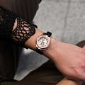 Оформление модели навевает классические оттенки благодаря безелюБезельВнешний ободок, закрепляющий стекло. В спортивных часах так называется поворотное кольцо с делениями на циферблате, выполняет роль таймера – замеряет отрезки времени на шкале. Неподвижный безель – элемент декора. Однонаправленно вращающийся безель на дайверских часах позволяет фиксировать моменты погружения и выныривания на поверхность., с IP-покрытиемIP-покрытиеМетод ионного напыления. Демонстрирует повышенную устойчивость к истиранию, окислению и химическим веществам. Под воздействием высокого давления и температуры около 1500°C молекулы металла надёжно соединяются с частицами корпуса часов.. Противоударный корпусУдаропрочный корпусМеханизм заключён в корпус, выполненный из современных материалов, устойчивых к ударам, механическим повреждениям и падению с высоты: инновационный пластик, карбон, нержавеющая сталь, титан. изготовлен из прочного пластика, материал поглощает силу удара, устойчив к вибрации, падениям. Японский кварцевый калибр. Минеральное стекло. ЛюминесцентнаяЛюминесцентное покрытиеПозволяет считывать показания времени в темноте. Производители наносят на стрелки, часовые индексы, безель или поверхность циферблата светонакопительный состав, дающий холодное свечение. подсветка стрелок, для дисплея - светодиодная подсветкаСветодиодная подсветкаСветодиодная или LED-подсветка обеспечивает появление яркого холодного свечения за счёт LED-элементов - маленьких лампочек. Они потребляют минимальное количество энергии, чаще всего можно встретить 1 светодиод, в нижней части циферблата.. Водонепроницаемость 100 метров. ХронографХронографФункция позволяет измерять отрезки времени с особой точностью: часы, минуты, секунды. Верным признаком хронографа является наличие на циферблате 3 дополнительных окошек-счётчиков., ежечасный сигнал, таймер обратного отсчёта, UTCUTCВсемирное кординационное время, не имеющее привязки к географическому положению Гринвича, основывается на атомном отсчёте времени. Регулировка времени осуществляется более точно, чем устаревшее GMT.