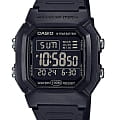 Многофункциональные часы Casio W-800H-1B с секундомером и таймером отлично подойдут для занятий спортом. Кварцевый механизм с высокой точностью. Органическое стекло. Класс водозащиты: 100 метров, позволит плавать, нырять и заниматься другими водными видами спорта. Корпус из пластика. Силикованный ремень с классической застежкой. Батарея рассчитана на 10 лет. Светодиодная подсветкаСветодиодная подсветкаСветодиодная или LED-подсветка обеспечивает появление яркого холодного свечения за счёт LED-элементов - маленьких лампочек. Они потребляют минимальное количество энергии, чаще всего можно встретить 1 светодиод, в нижней части циферблата.. Функция секундомерСекундомерСекундоме́р — прибор, способный измерять интервалы времени с точностью до долей секунды. с точностью измерений 1/100 сек. и пределом измерения 1 час. Ежедневный будильникБудильникБуди́льник — часы, в заданный момент времени подающие звуковой, световой и/или в редких случаях другой сигнал.. Автоматический календарь. 12/24 часовой формат времени.
