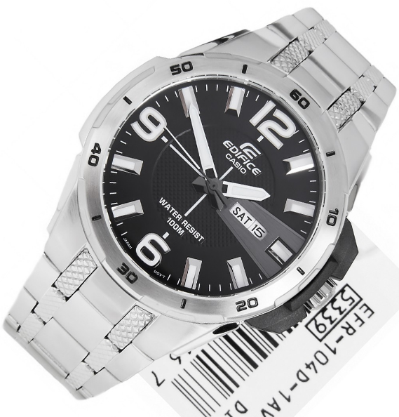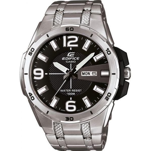 Мужские классические наручные часы Casio Edifice надежные и практичные. Кварцевый японский механизм Miyota. Часы оснащены календарем. Циферблат черного цвета с контрастными индексами и стрелками. Стрелки и индексы с светонакопительным нанесением. Корпус и браслет выполнены из высококачественной стали с антикоррозийными свойствами. Минеральное стекло устойчиво к появлению царапин. Водонепроницаемость (10 Бар). Идеально подходит для плавания с маской и трубкой.