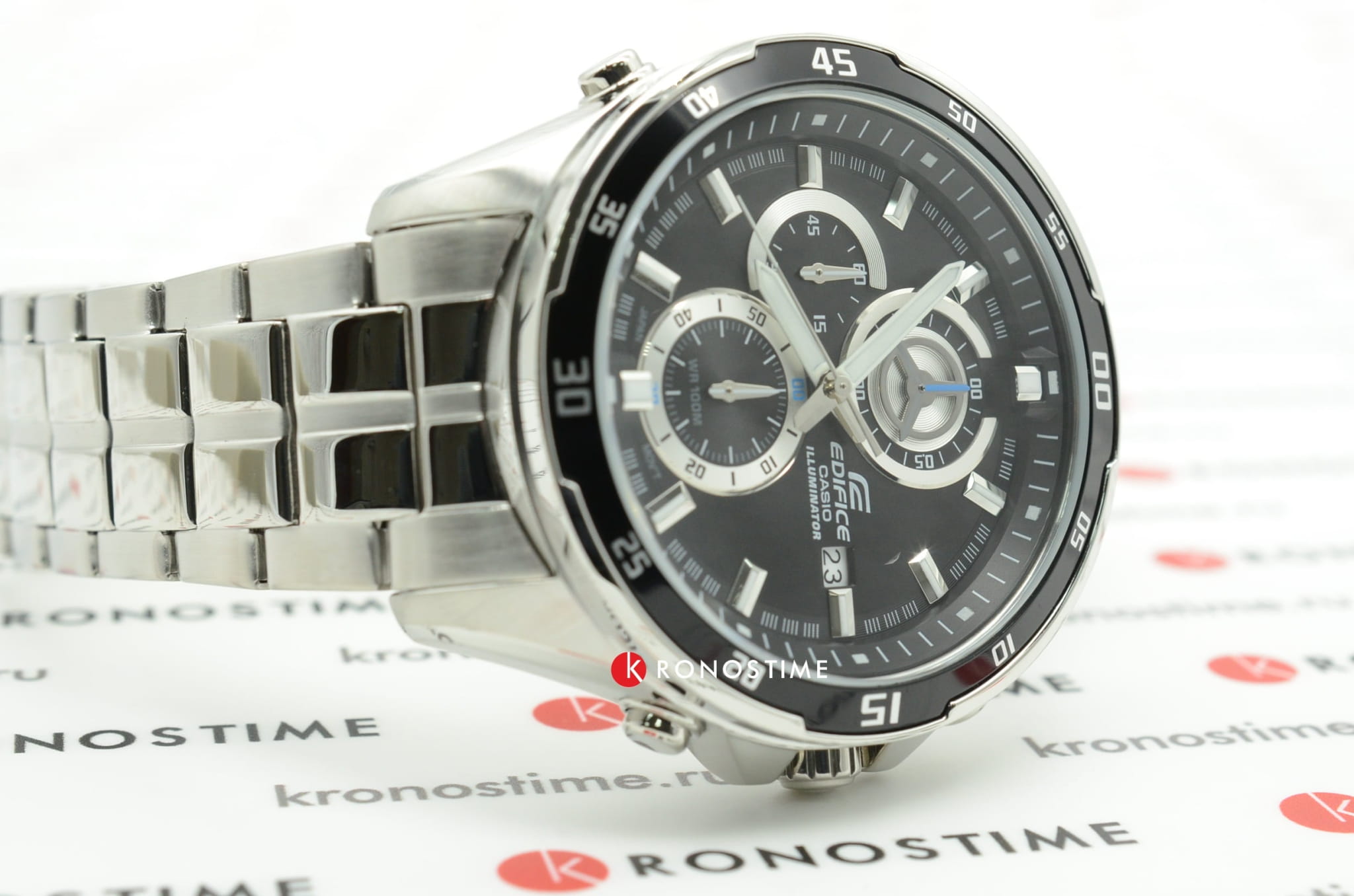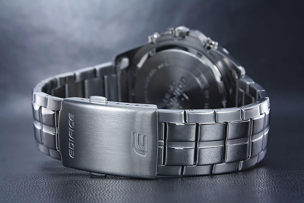 Японский мужской хронографХронографФункция позволяет измерять отрезки времени с особой точностью: часы, минуты, секунды. Верным признаком хронографа является наличие на циферблате 3 дополнительных окошек-счётчиков. из коллекции Edifice отражает дух высоких скоростей, брендовая модель поможет подчеркнуть индивидуальный образ.