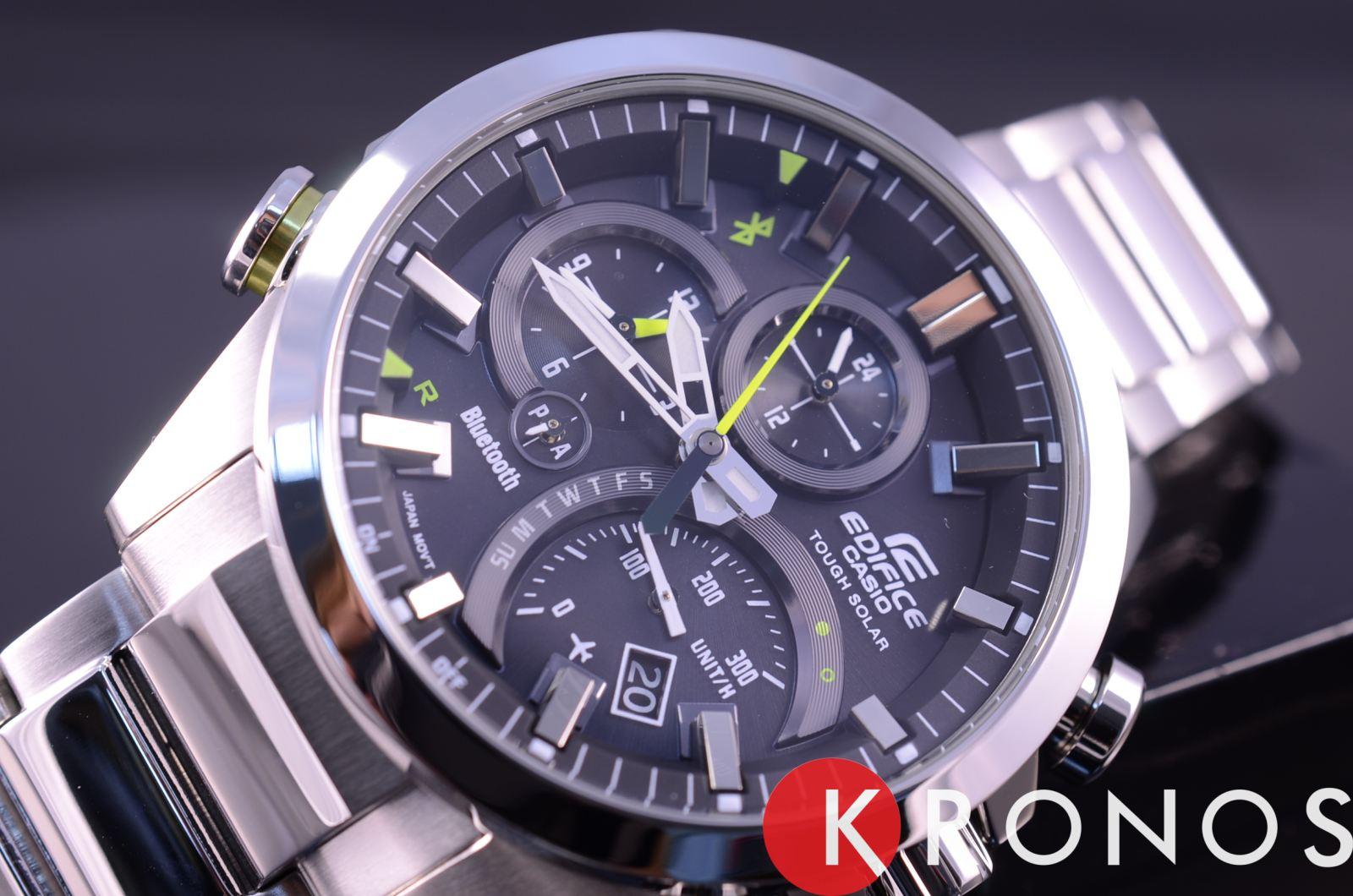Мужские наручные часы Casio Edifice надежные и практичные. Солнечная подзаряжающаяся батарейка обеспечивает питание часов для работы. Часы оснащены функциями: Авиарежим (режим оффлайн). Часы переключаются в режим оффлайн нажатием кнопки. С помощью этой функции можно отключить радио- и GPS-приемник на время перелета. Функция поиска телефона. Не помните, куда положили смартфон. При нажатии кнопки на ваших часах смартфон подает звуковой сигнал. Индикатор электронной почты. На циферблате символически отображается наличие новых сообщений электронной почты. Функция мирового времени. Отображение текущего времени в основных городах и конкретных областях по всему миру.