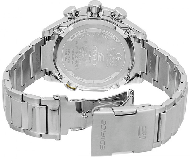 Мужские наручные часы Casio Edifice надежные и практичные. Солнечная подзаряжающаяся батарейка обеспечивает питание часов для работы. Часы оснащены функциями: Авиарежим (режим оффлайн). Часы переключаются в режим оффлайн нажатием кнопки. С помощью этой функции можно отключить радио- и GPS-приемник на время перелета. Функция поиска телефона. Не помните, куда положили смартфон. При нажатии кнопки на ваших часах смартфон подает звуковой сигнал. Индикатор электронной почты. На циферблате символически отображается наличие новых сообщений электронной почты. Функция мирового времени. Отображение текущего времени в основных городах и конкретных областях по всему миру.