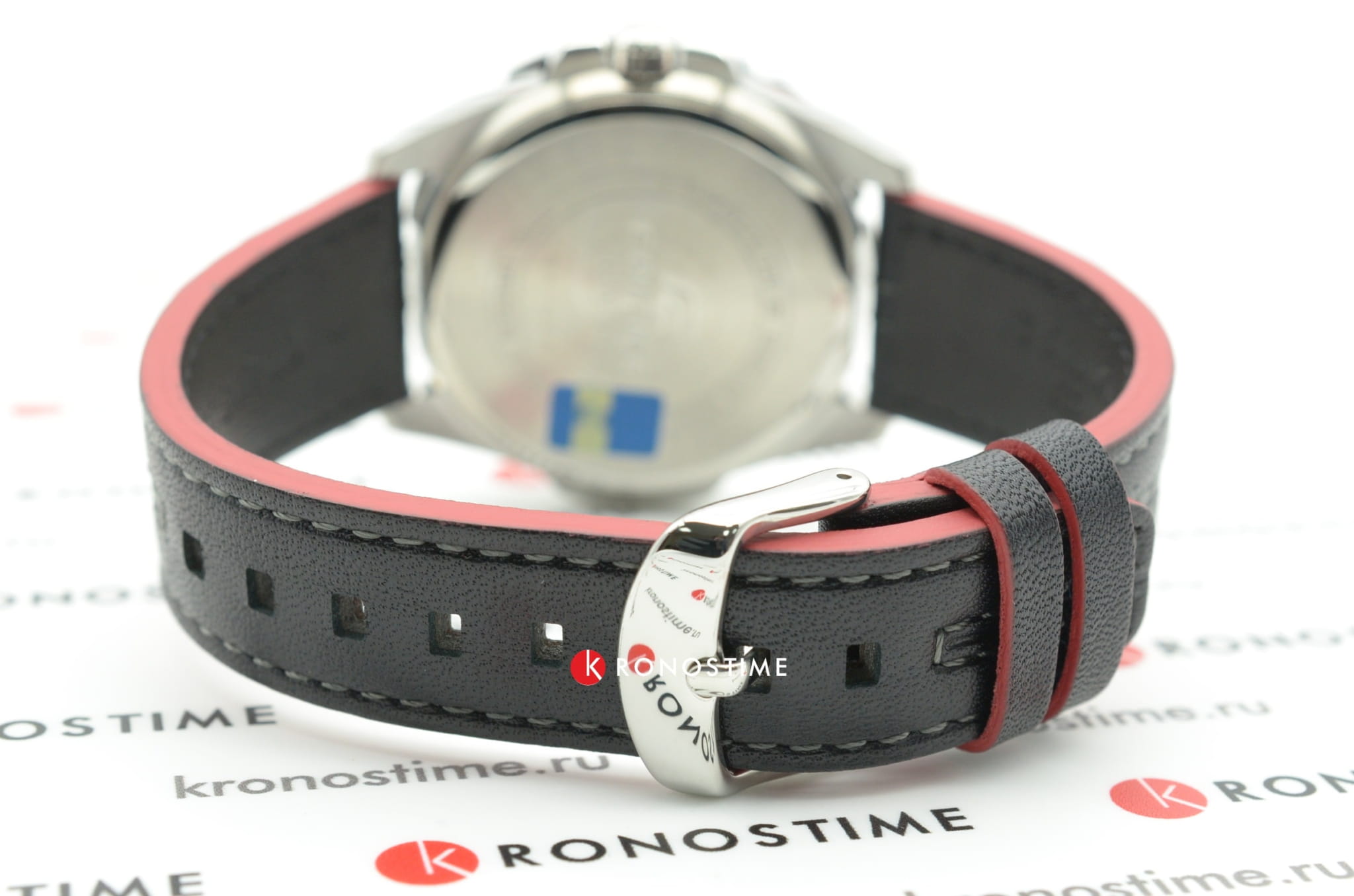 Это отличное решение для современных мужчин, стремящихся выглядеть стильно в любой ситуации. Чёрный циферблат с крупной индикацией времени дополнен яркими акцентами красного цвета, что придаёт общему дополнению динамичность. Прослеживается дайверский характер благодаря однонаправленно вращающемуся фактурному безелюБезельВнешний ободок, закрепляющий стекло. В спортивных часах так называется поворотное кольцо с делениями на циферблате, выполняет роль таймера – замеряет отрезки времени на шкале. Неподвижный безель – элемент декора. Однонаправленно вращающийся безель на дайверских часах позволяет фиксировать моменты погружения и выныривания на поверхность.. Ударопрочный корпусУдаропрочный корпусМеханизм заключён в корпус, выполненный из современных материалов, устойчивых к ударам, механическим повреждениям и падению с высоты: инновационный пластик, карбон, нержавеющая сталь, титан. сделан из стали 316L с противокоррозионными свойствами. Кварцевый японский механизм отличается точностью хода +/- 20 секунд в месяц. Срок службы батарейки - 3 года. Частичное IP-покрытиеIP-покрытиеМетод ионного напыления. Демонстрирует повышенную устойчивость к истиранию, окислению и химическим веществам. Под воздействием высокого давления и температуры около 1500°C молекулы металла надёжно соединяются с частицами корпуса часов.. Минеральное стекло. Оригинальный ремешок из натуральной кожи. Люминесцентная подсветка NeobriteПодсветка NeobriteИспользование светонакопительных составов на основе сульфида цинка или алюмината стронция, яркий свет можно наблюдать на протяжении 6-10 часов после «зарядки» часов около источника света.. Водостойкость 100 метров. Завинчивающаяся задняя крышка. Заводная головка с системой защиты. Отображение текущего числа. Габариты: 47,2 x 41 x 10,4 мм.