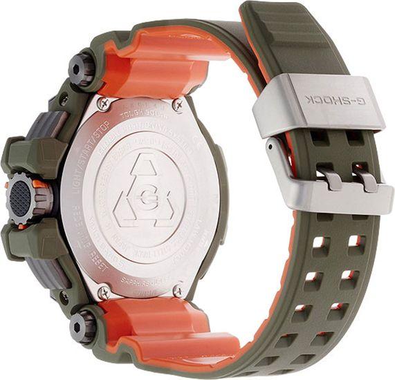 Перед вами модель из флагманской серии G-SHOCK GPW в милитаристическом дизайне цвета хаки, черным стальным безелем и яркими оранжевыми деталями — это первые в мире часы с GPS- и радио-синхронизацией времени с атомными часами в разных частях света.