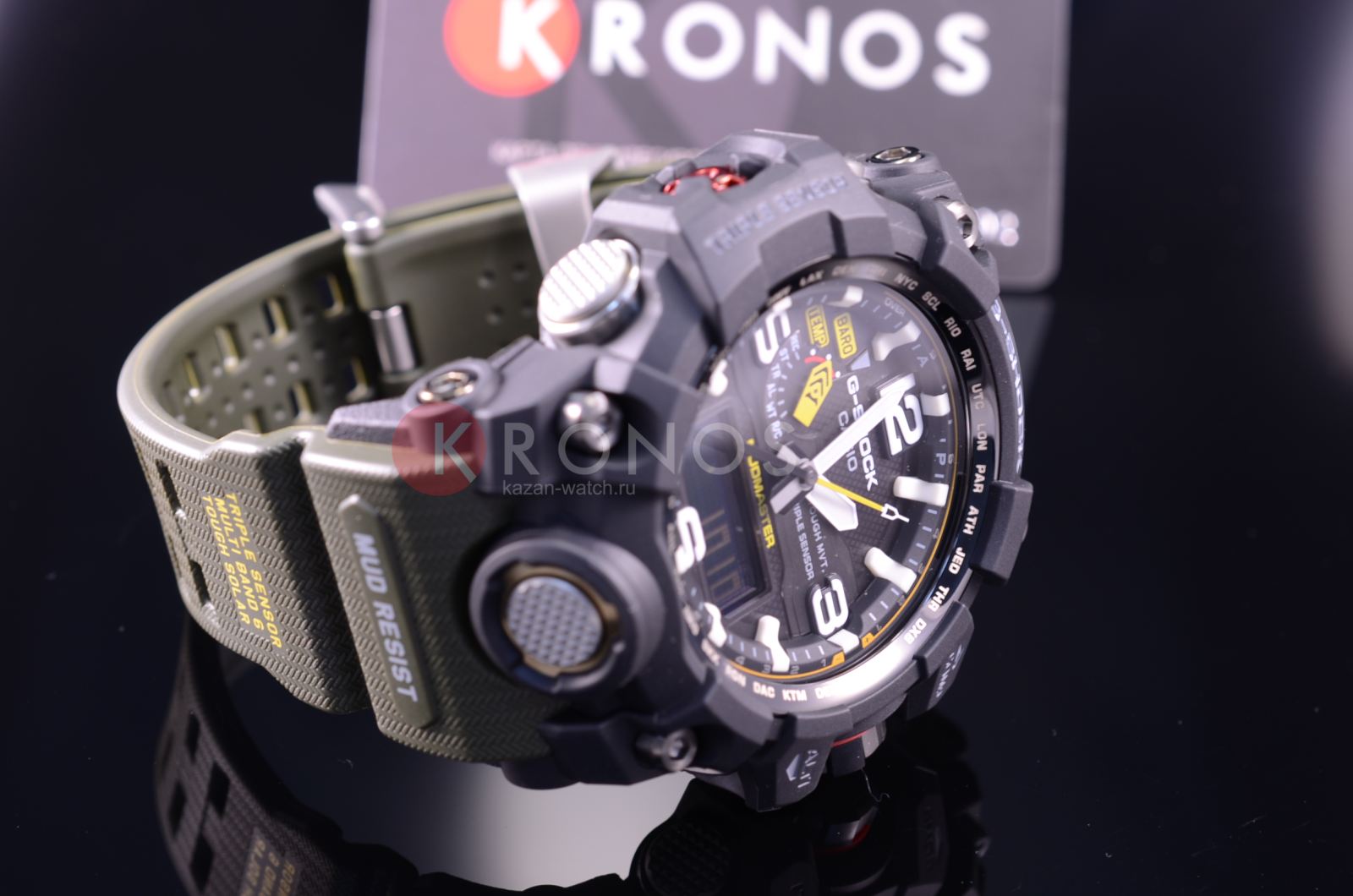 Японские мужские часы из коллекции G-Shock помогут завершить повседневный образ и порадуют владельца широким функционалом. Наручные часы серии Mudmaster привлекают брутальным дизайном с внушительным ударопрочным корпусомУдаропрочный корпусМеханизм заключён в корпус, выполненный из современных материалов, устойчивых к ударам, механическим повреждениям и падению с высоты: инновационный пластик, карбон, нержавеющая сталь, титан.. Они выполнены в стиле милитари, сочетая в себе узнаваемое оформление, прочные материалы и современные технологии. Привлекательно смотрится полимерный ремешок цвета хаки, обеспечивающий комфортное ношение. Циферблат защищает сапфировое стеклоСапфировое стеклоПрочный и надёжный материал из кристалла сапфира синтетического происхождения, характеризующийся особой твёрдостью и устойчивостью к царапинам и повреждениям. с антибликовым покрытием, устойчивое к возникновению царапин на поверхности. Корпус из высококачественного пластика. Двойная электролюминесцентная подсветкаЭлектролюминесцентная подсветкаЭлектролюминесцентная панель устанавливается под ЖК-экраном часов, при нажатии кнопки электричество преобразуется в свет за счёт подачи напряжения на атомы фосфора, такой тип подсветки позволяет освещать весь циферблат.. Питание от солнечной батареи Tough SolarTough SolarТехнология основана на подзарядке аккумулятора от источника солнечного света, специальная панель улавливает солнечные лучи и преобразует их в энергию для работы часов. Достаточно пары минут нахождения на солнце для функционирования часов в течении суток.. Индикатор заряда батарейки. Устойчивость к грязи и пыли. Включение и выключение звука кнопок. Функции: цифровой компас, барометр, термометр от -10° С до +60°С, UTCUTCВсемирное кординационное время, не имеющее привязки к географическому положению Гринвича, основывается на атомном отсчёте времени. Регулировка времени осуществляется более точно, чем устаревшее GMT.