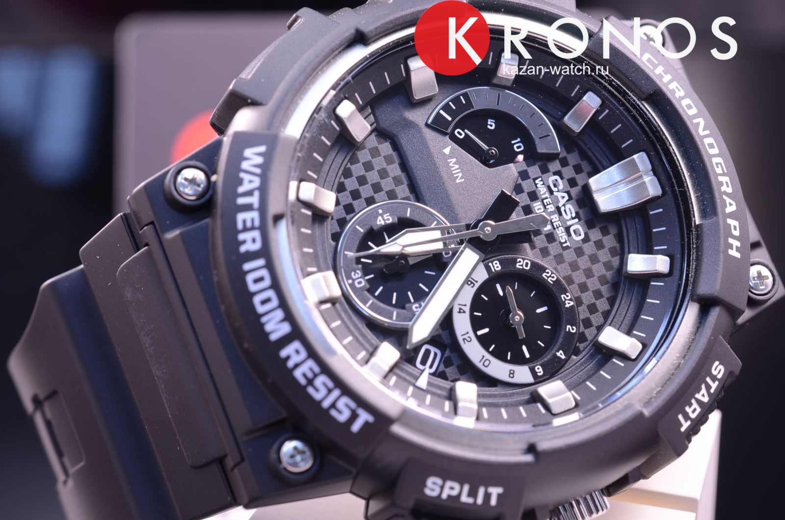 Спортивные японские мужские часы c хронографомХронографФункция позволяет измерять отрезки времени с особой точностью: часы, минуты, секунды. Верным признаком хронографа является наличие на циферблате 3 дополнительных окошек-счётчиков. Casio Collection MCW-200H-1A, кварцевый механизм с высокой точностью. Класс водозащиты: 100 метров, позволит плавать, нырять и заниматься другими водными видами спорта. Корпус часов изготовлен из пластика. Часы-хронографХронографФункция позволяет измерять отрезки времени с особой точностью: часы, минуты, секунды. Верным признаком хронографа является наличие на циферблате 3 дополнительных окошек-счётчиков. с секундомеромСекундомерСекундоме́р — прибор, способный измерять интервалы времени с точностью до долей секунды. до 10мин, точность 1с. 12-ти и 24-х часовой формат времени. Ретроградный указатель минутной стрелки хронографаХронографФункция позволяет измерять отрезки времени с особой точностью: часы, минуты, секунды. Верным признаком хронографа является наличие на циферблате 3 дополнительных окошек-счётчиков.. Стрелки с люминесцентным покрытиемЛюминесцентное покрытиеПозволяет считывать показания времени в темноте. Производители наносят на стрелки, часовые индексы, безель или поверхность циферблата светонакопительный состав, дающий холодное свечение..