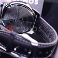 Наручные часы отличаются классическим исполнением, благодаря чему модель можно носить как с деловым костюмом, так и с повседневным свитером. Они имеют корпус из гипоаллергенной латуни, отличающийся лёгкостью. Батарейка для работы кварцевого механизма рассчитана на 3 года. Заводная головка с защитой. Водостойкость 50 метров. Люминесцентная подсветкаЛюминесцентное покрытиеПозволяет считывать показания времени в темноте. Производители наносят на стрелки, часовые индексы, безель или поверхность циферблата светонакопительный состав, дающий холодное свечение.. Минеральное стекло. Чёрный ремешок из натуральной кожи с контрастной прострочкой. Окошко даты. Габариты: 50 x 44,9 x 9,4 мм.