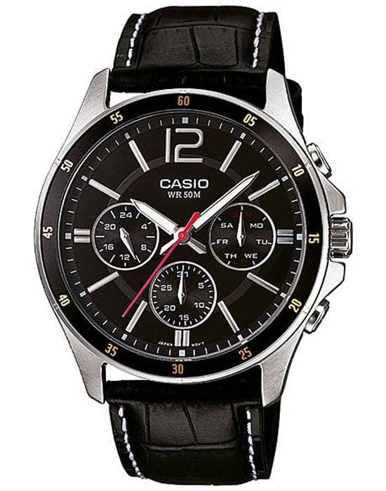 Мужские японские наручные часы из линейки MTP Collection умело сочетают в себе винтажные элементы и спортивный стиль, часы придутся по вкусу ценителям японского качества и лаконичности. Высокотехнологичный аксессуар обладает строгим стилем и традиционной формой циферблата. Сдержанные, классические цвета и плавные линии позволяют носить часы, не снимая, их универсальность идеально подходит для делового костюма, повседневной одежды или образа для вечернего выхода. Для корпуса использована нержавеющая сталь 316L, за счёт чего достигается повышенная устойчивость к повреждениям и ударам. Надежные часы которые прослужат много лет. Модель комплектуется надёжным механизмом, точность хода которого составляет +/- 20 сек/мес.