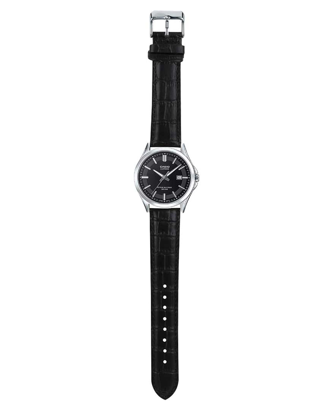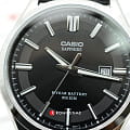 Японские мужские кварцевые часы с сапфировым стекломСапфировое стеклоПрочный и надёжный материал из кристалла сапфира синтетического происхождения, характеризующийся особой твёрдостью и устойчивостью к царапинам и повреждениям. Casio Collection MTS-100L-1A, кварцевый механизм с высокой точностью. Корпус часов изготовлен из нержавеющей. Подсветка NeobriteПодсветка NeobriteИспользование светонакопительных составов на основе сульфида цинка или алюмината стронция, яркий свет можно наблюдать на протяжении 6-10 часов после «зарядки» часов около источника света. обеспечивает длительное послесвечение в темноте даже после кратковременного нахождения на свету. Окошко даты находится в положении 3 часа. Батарея рассчитана на 10 лет. Заводная головка с защитой. Задняя крышка с винтовым фиксатором. Класс водозащиты: 50 метров, позволит защитить корпус от случайных брызг или капель дождя. Кожаный ремешок на стандартной застежке.