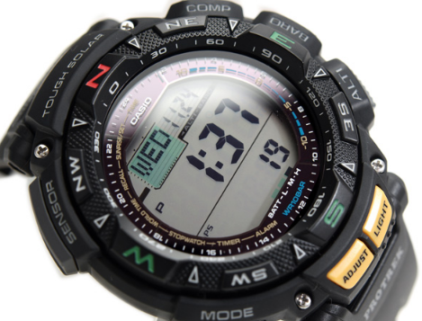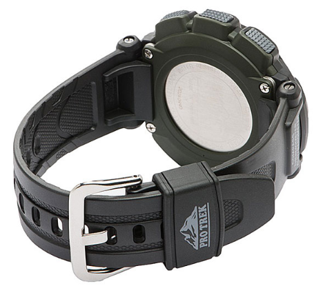 Функциональная модель с зелёными и оранжевыми акцентами обладает расширенными возможностями. Каждое усложнение направляет усилия на то, чтобы ваше путешествие прошло легко и насыщенно. Среди функций компас, барометр, индикатор температуры, мировое времяМировое время Полезное часовое усложнение, отображающее время в основных городах и известных областях по всему миру, оно связано с часовыми поясами, удобно для путешественников и бизнесменов. , график восхода и заката солнца, высотомер, таймер. Японский кварцевый механизм. Технология . Индикатор состояния заряда батареи. Электролюминесцентная подсветкаЭлектролюминесцентная подсветкаЭлектролюминесцентная панель устанавливается под ЖК-экраном часов, при нажатии кнопки электричество преобразуется в свет за счёт подачи напряжения на атомы фосфора, такой тип подсветки позволяет освещать весь циферблат. циферблата. Ударопрочный корпусУдаропрочный корпусМеханизм заключён в корпус, выполненный из современных материалов, устойчивых к ударам, механическим повреждениям и падению с высоты: инновационный пластик, карбон, нержавеющая сталь, титан. и ремешок из полимерного материала. Вращающийся безельБезельВнешний ободок, закрепляющий стекло. В спортивных часах так называется поворотное кольцо с делениями на циферблате, выполняет роль таймера – замеряет отрезки времени на шкале. Неподвижный безель – элемент декора. Однонаправленно вращающийся безель на дайверских часах позволяет фиксировать моменты погружения и выныривания на поверхность.. Минеральное стекло. Водостойкость до 10 бар. Устойчивость к температуре ниже -10°C. Габариты: 57,3 x 50,9 x 15,3 мм.