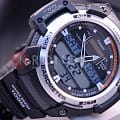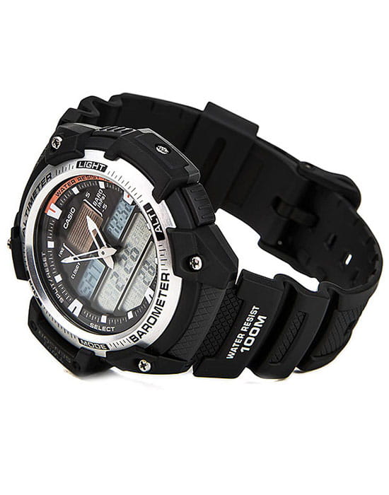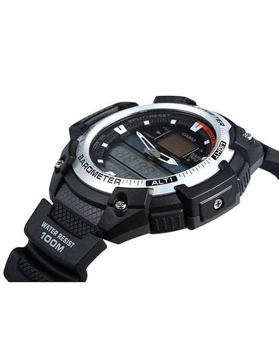 Спортивные мужские часы SGW-400H-1B. Оснащены датчиком температуры, альтиметром, барометром и удобной электролюминесцентной подсветкой, освещающей весь циферблат. Корпус - Пластиковый; Стекло - Пластик; Водозащита - 100 м. (WR 100); Материал ремешка - Каучуковый; Цвет ремешка - Черный; Цвет циферблата - Lcd.