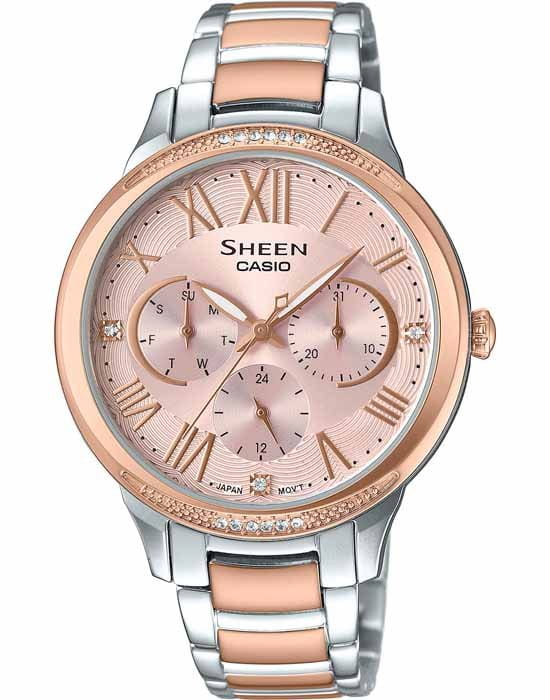 Напоминаем, что коллекция Casio Sheen - это линейка ультра-стильных женских фешн-часов в стальном корпусе, способных украсить собой самое изысканное и утонченное женское запястье. Особенностью коллекции, сделавшей ее популярной во всем мире, является использование знаменитых кристаллов Swarovski® в отделке циферблата каждой модели Sheen.