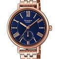 Стильный циферблат тёмно-синего цвета дополнен необычным счётчиком, демонстрирующим сегодняшнее число. Роскоши придают кристаллы Swarovski, их завораживающий блеск подчеркнёт ваш безупречный вкус. Кварцевый японский механизм работает за счёт батарейки, срок службы которой составляет 3 года. Водостойкость при давлении 5 бар. Корпус и браслет из нержавеющей стали 316L с розово-золотистым IP-покрытиемIP-покрытиеМетод ионного напыления. Демонстрирует повышенную устойчивость к истиранию, окислению и химическим веществам. Под воздействием высокого давления и температуры около 1500°C молекулы металла надёжно соединяются с частицами корпуса часов.. Габариты: 41 x 34 x 9 мм.