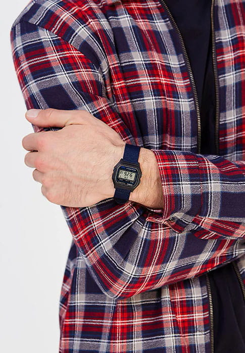 Аккуратный прямоугольный циферблат подсвечивается сбоку микроподсветкой. Секундомер измерят прошедшее время с точностью в 1/100 секунды. Мягкий ремешок из нейлона будет красиво обрамлять запястье. Цифровой способ отображения времени. Экономная батарейка служит 10 лет.