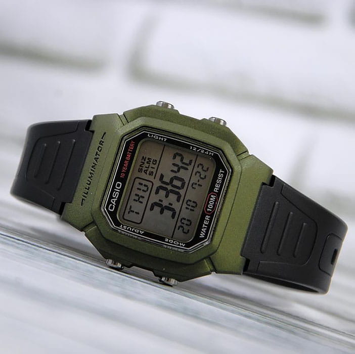 Японские мужские часы Casio Collection W-800HM-3AVEF из коллекции Casio Illuminator станут подходящим аксессуаром для спорта и повседневной жизни.