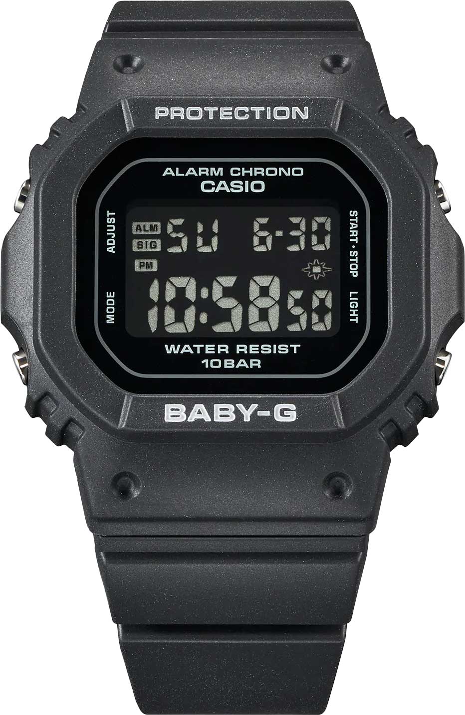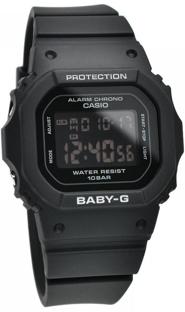 Женские противоударныеУдаропрочный корпусМеханизм заключён в корпус, выполненный из современных материалов, устойчивых к ударам, механическим повреждениям и падению с высоты: инновационный пластик, карбон, нержавеющая сталь, титан. японские часы-хронографХронографФункция позволяет измерять отрезки времени с особой точностью: часы, минуты, секунды. Верным признаком хронографа является наличие на циферблате 3 дополнительных окошек-счётчиков. с секундомеромСекундомерСекундоме́р — прибор, способный измерять интервалы времени с точностью до долей секунды. Casio Baby-G BGD-565-1, кварцевый механизм с высокой точностью. Класс водозащиты: 100 метров, позволит плавать, нырять и заниматься другими водными видами спорта. С широким функционалом, в который входит: таймерТаймерОтсчитывает секунды в обратном направлении в заданном интервале времени., будильникБудильникБуди́льник — часы, в заданный момент времени подающие звуковой, световой и/или в редких случаях другой сигнал., 12/24-часовое отображение времени, автоматический календарь. Электролюминесцентная подсветкаЭлектролюминесцентная подсветкаЭлектролюминесцентная панель устанавливается под ЖК-экраном часов, при нажатии кнопки электричество преобразуется в свет за счёт подачи напряжения на атомы фосфора, такой тип подсветки позволяет освещать весь циферблат. дисплея помогает считывать информацию при плохом освещении, после отпускания кнопки свечение продолжается еще некоторое время. Световая индикация сигнала. Цвет подсветки: сине-зеленый. Батарейка со сроком службы 3 года. Корпус часов изготовлен из полимерного пластика.