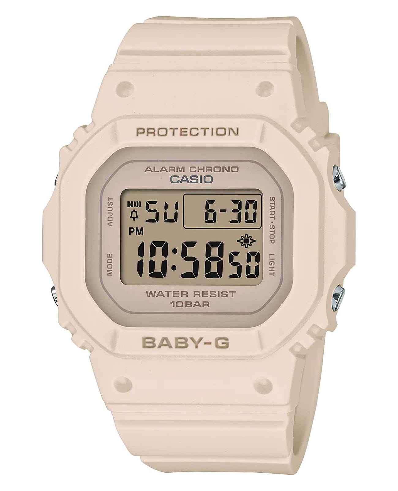 Женские противоударныеУдаропрочный корпусМеханизм заключён в корпус, выполненный из современных материалов, устойчивых к ударам, механическим повреждениям и падению с высоты: инновационный пластик, карбон, нержавеющая сталь, титан. японские часы Casio Baby-G BGD-565U-4, кварцевый механизм с высокой точностью. Культовые часы BABY-G look, которые вам так нравятся, — компактные повседневные часы для активного образа жизни. Меньшие по размеру и более тонкие BGD-565 сконструированы таким образом, что при взгляде сбоку они кажутся плоскими, что делает их еще тоньше. С широким функционалом, в который входит: таймерТаймерОтсчитывает секунды в обратном направлении в заданном интервале времени., многофункциональный будильникБудильникБуди́льник — часы, в заданный момент времени подающие звуковой, световой и/или в редких случаях другой сигнал., 12 и 24-часовой формат времени, вечный календарьВечный календарьКлассическое часовое усложнение, представляющее собой календарь, рассчитанный на несколько лет вперёд (стандартно – до 2099 года). Определяет текущую дату, день недели, месяц.. Ударопрочный корпусУдаропрочный корпусМеханизм заключён в корпус, выполненный из современных материалов, устойчивых к ударам, механическим повреждениям и падению с высоты: инновационный пластик, карбон, нержавеющая сталь, титан. защищает механизм от ударов и вибрации. Светодиодная подсветкаСветодиодная подсветкаСветодиодная или LED-подсветка обеспечивает появление яркого холодного свечения за счёт LED-элементов - маленьких лампочек. Они потребляют минимальное количество энергии, чаще всего можно встретить 1 светодиод, в нижней части циферблата. освещает весь циферблат, после отпускания кнопки свечение продолжается еще некоторое время. Класс водозащиты: 100 метров, позволит плавать, нырять и заниматься другими водными видами спорта. Ремешок из полимерного материала на стандартной застежке.