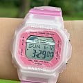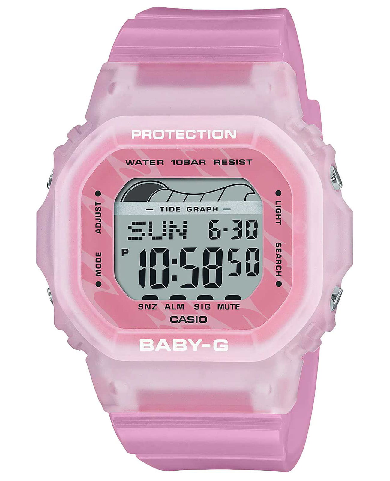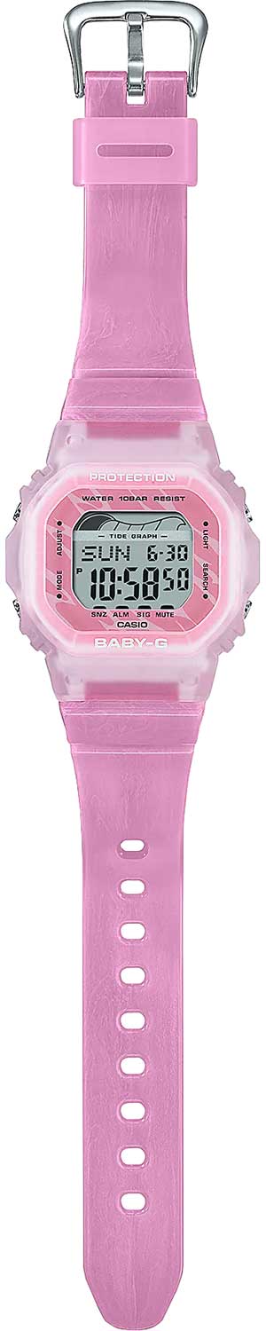 Женские японские часы-хронографХронографФункция позволяет измерять отрезки времени с особой точностью: часы, минуты, секунды. Верным признаком хронографа является наличие на циферблате 3 дополнительных окошек-счётчиков. Casio Baby-G BLX-565S-4E, кварцевый механизм с высокой точностью. Класс водозащиты: 100 метров, позволит плавать, нырять и заниматься другими водными видами спорта. Корпус часов изготовлен из пластика розового цвета. Ударопрочный корпусУдаропрочный корпусМеханизм заключён в корпус, выполненный из современных материалов, устойчивых к ударам, механическим повреждениям и падению с высоты: инновационный пластик, карбон, нержавеющая сталь, титан. защищает механизм от ударов и вибрации. Светодиодная подсветкаСветодиодная подсветкаСветодиодная или LED-подсветка обеспечивает появление яркого холодного свечения за счёт LED-элементов - маленьких лампочек. Они потребляют минимальное количество энергии, чаще всего можно встретить 1 светодиод, в нижней части циферблата. освещает весь циферблат, после отпускания кнопки свечение продолжается еще некоторое время. Особенность модели в функциях будильникаБудильникБуди́льник — часы, в заданный момент времени подающие звуковой, световой и/или в редких случаях другой сигнал., секундомераСекундомерСекундоме́р — прибор, способный измерять интервалы времени с точностью до долей секунды., таймераТаймерОтсчитывает секунды в обратном направлении в заданном интервале времени. и мирового времениМировое время Полезное часовое усложнение, отображающее время в основных городах и известных областях по всему миру, оно связано с часовыми поясами, удобно для путешественников и бизнесменов. . Циферблат подсвечивается ярким светодиодомСветодиодная подсветкаСветодиодная или LED-подсветка обеспечивает появление яркого холодного свечения за счёт LED-элементов - маленьких лампочек. Они потребляют минимальное количество энергии, чаще всего можно встретить 1 светодиод, в нижней части циферблата.. Послесвечение. Цвет подсветки: белый. Отображение возраста и фазы Луны. Отображение сведений о приливах и отливах на заданную дату и время. 12-ти и 24-х часовой формат времени. Функции включения/отключения летнего времени и включения/отключения звука. Батарея рассчитана на 3 года. Задняя крышка крепится на 4-х винтах.