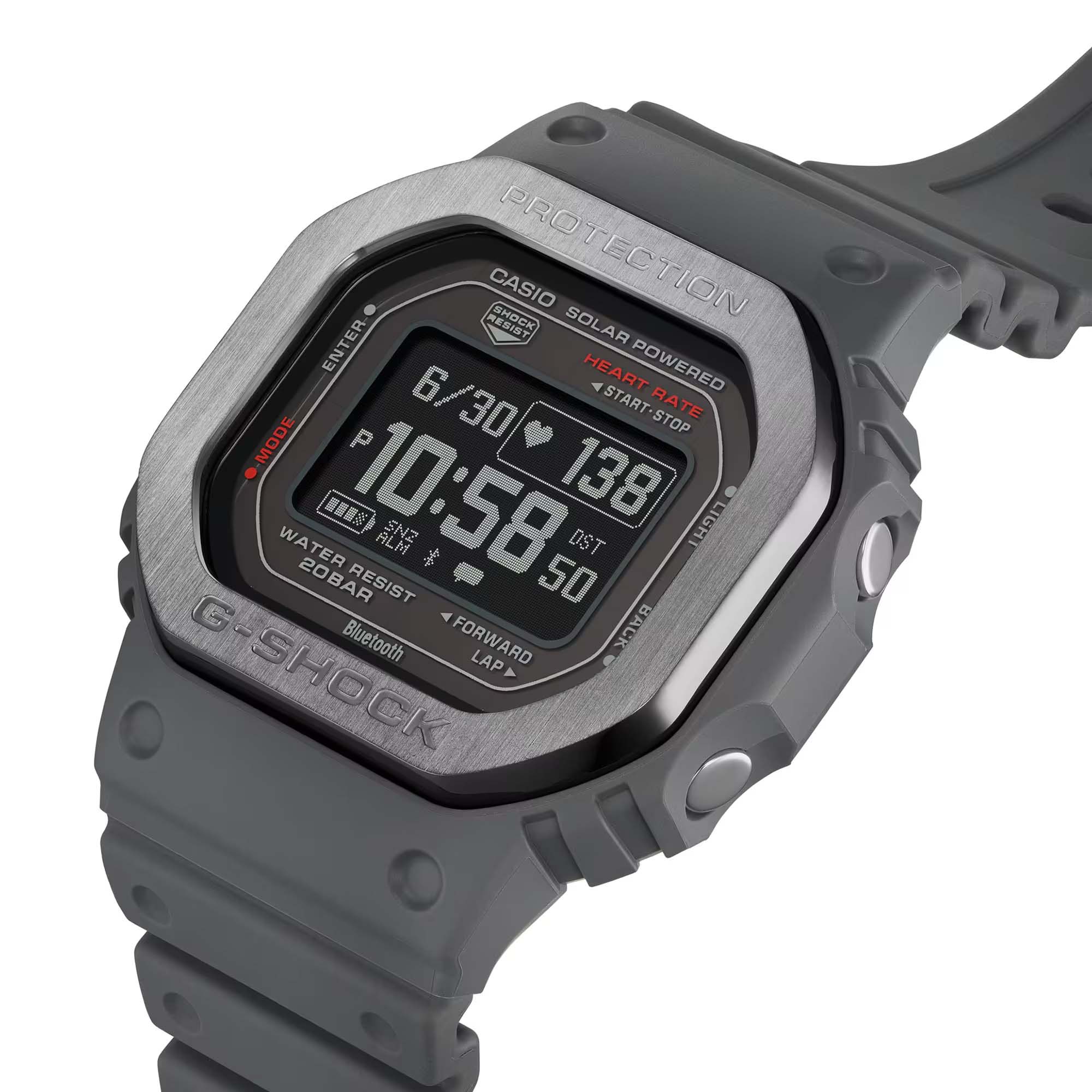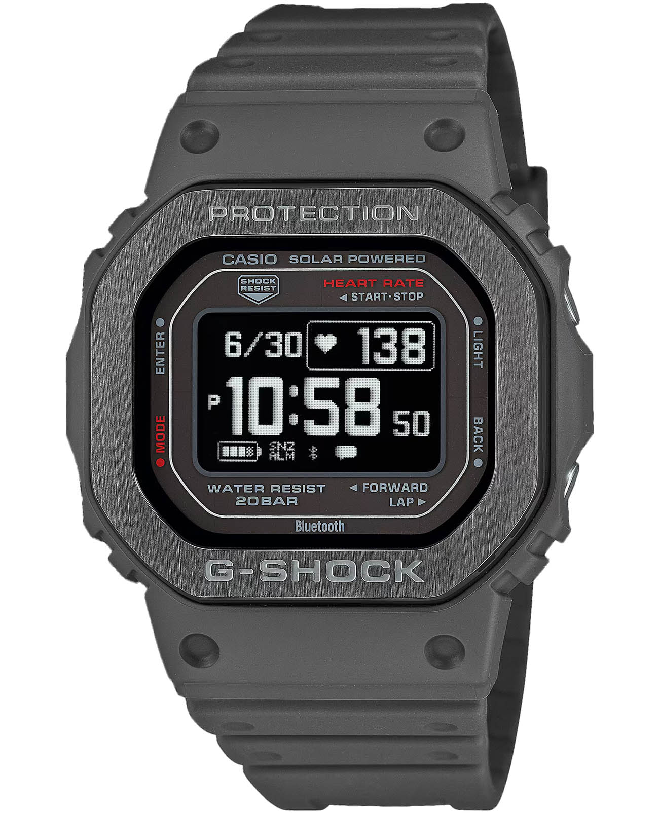 Спортивные японские мужские часы с секундомеромСекундомерСекундоме́р — прибор, способный измерять интервалы времени с точностью до долей секунды. и хронографомХронографФункция позволяет измерять отрезки времени с особой точностью: часы, минуты, секунды. Верным признаком хронографа является наличие на циферблате 3 дополнительных окошек-счётчиков. Casio G-Shock DW-H5600MB-8DR (DW-H5600MB-8), кварцевый механизм с высокой точностью. Корпус изготовлен из пластика и стали с IP-покрытиемIP-покрытиеМетод ионного напыления. Демонстрирует повышенную устойчивость к истиранию, окислению и химическим веществам. Под воздействием высокого давления и температуры около 1500°C молекулы металла надёжно соединяются с частицами корпуса часов.. Tough Solar - солнечные батарейки большой мощности, индикатор заряда батареи. Функция автоматического сохранения энергии. Время работы аккумулятора без подзарядки: 35ч, 1 месяц (без использования пульсометра), при включенной функции сохранения энергии до 11 месяцев. Возможность зарядки через специальный кабель с разъемом USB типа A. Ударопрочный корпусУдаропрочный корпусМеханизм заключён в корпус, выполненный из современных материалов, устойчивых к ударам, механическим повреждениям и падению с высоты: инновационный пластик, карбон, нержавеющая сталь, титан. защищает механизм от ударов и вибрации. ТаймерТаймерОтсчитывает секунды в обратном направлении в заданном интервале времени. обратного отсчета от 1сек до 1ч. Мировое времяМировое время Полезное часовое усложнение, отображающее время в основных городах и известных областях по всему миру, оно связано с часовыми поясами, удобно для путешественников и бизнесменов. – 38 городов (38 часовых поясов), всемирное координированное время UTCUTCВсемирное кординационное время, не имеющее привязки к географическому положению Гринвича, основывается на атомном отсчёте времени. Регулировка времени осуществляется более точно, чем устаревшее GMT.