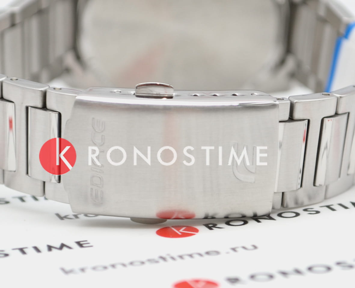 Модель Casio Edifice EFB-710D-2AVUDF сочетает элегантность и спортивную функциональность. Корпус диаметром 41 мм выполнен из нержавеющей стали, а браслет с H-образными звеньями обеспечивает надежную фиксацию и комфорт при ношении.