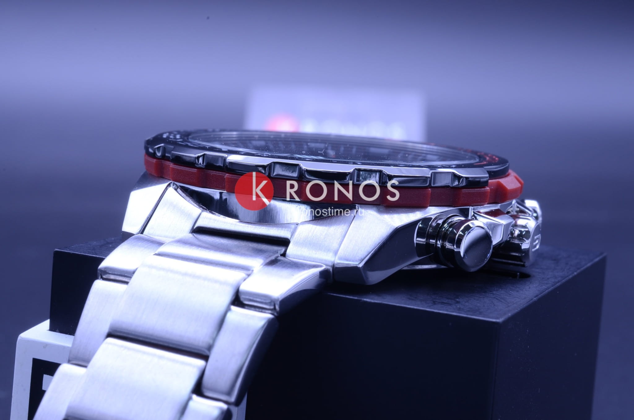 Модель отличается динамичным дизайном с уклоном в автомобильную стилистику, поклонники спортивного стиля по достоинству оценят аксессуар. Односторонне вращающийся безельБезельВнешний ободок, закрепляющий стекло. В спортивных часах так называется поворотное кольцо с делениями на циферблате, выполняет роль таймера – замеряет отрезки времени на шкале. Неподвижный безель – элемент декора. Однонаправленно вращающийся безель на дайверских часах позволяет фиксировать моменты погружения и выныривания на поверхность. имеет цветное IP-покрытиеIP-покрытиеМетод ионного напыления. Демонстрирует повышенную устойчивость к истиранию, окислению и химическим веществам. Под воздействием высокого давления и температуры около 1500°C молекулы металла надёжно соединяются с частицами корпуса часов., дополнительно защищающее от царапин. Японский кварцевый механизм с точностью хода +/- 20 секунд в месяц. Срок службы батарейки - 3 года. Заводная головка с защитой. Закручивающаяся задняя крышка. Водонепроницаемость 100 метров. Противоударный корпусУдаропрочный корпусМеханизм заключён в корпус, выполненный из современных материалов, устойчивых к ударам, механическим повреждениям и падению с высоты: инновационный пластик, карбон, нержавеющая сталь, титан. и браслет из нержавеющей стали 316L. Минеральное стекло, устойчивое к царапинам. Подсветка NeobriteПодсветка NeobriteИспользование светонакопительных составов на основе сульфида цинка или алюмината стронция, яркий свет можно наблюдать на протяжении 6-10 часов после «зарядки» часов около источника света.. Секундомер, индикация числа. Габариты: 49,3 x 43,2 x 11,7 мм.