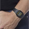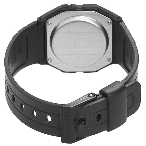 Электронные часы в чёрном исполнении напоминают первые модели от Casio благодаря винтажному 8-угольному ударопрочному корпусуУдаропрочный корпусМеханизм заключён в корпус, выполненный из современных материалов, устойчивых к ударам, механическим повреждениям и падению с высоты: инновационный пластик, карбон, нержавеющая сталь, титан., сделанному из надёжного пластика. Аксессуар с кварцевым механизмом работает от батарейки, характеризующейся высоким сроком службы - до 7 лет. Циферблат оснащён светодиодной микроподсветкойСветодиодная подсветкаСветодиодная или LED-подсветка обеспечивает появление яркого холодного свечения за счёт LED-элементов - маленьких лампочек. Они потребляют минимальное количество энергии, чаще всего можно встретить 1 светодиод, в нижней части циферблата., освещающей его сбоку. Органическое стекло легко полируется. Гибкий полимерный ремешок. Ежедневный будильник, секундомер, автоматический календарь, 12 и 24-х часовое отображение времени. Габариты: 33,2 x 38 x 8,5 мм.
