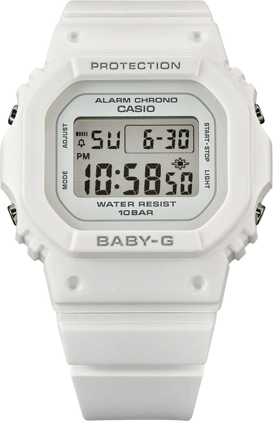 Женские противоударные японские часы Casio Baby-G BGD-565-7E, кварцевый механизм с высокой точностью. Класс водозащиты: 100 метров, позволит плавать, нырять и заниматься другими водными видами спорта. Корпус часов изготовлен из пластика, цвета.