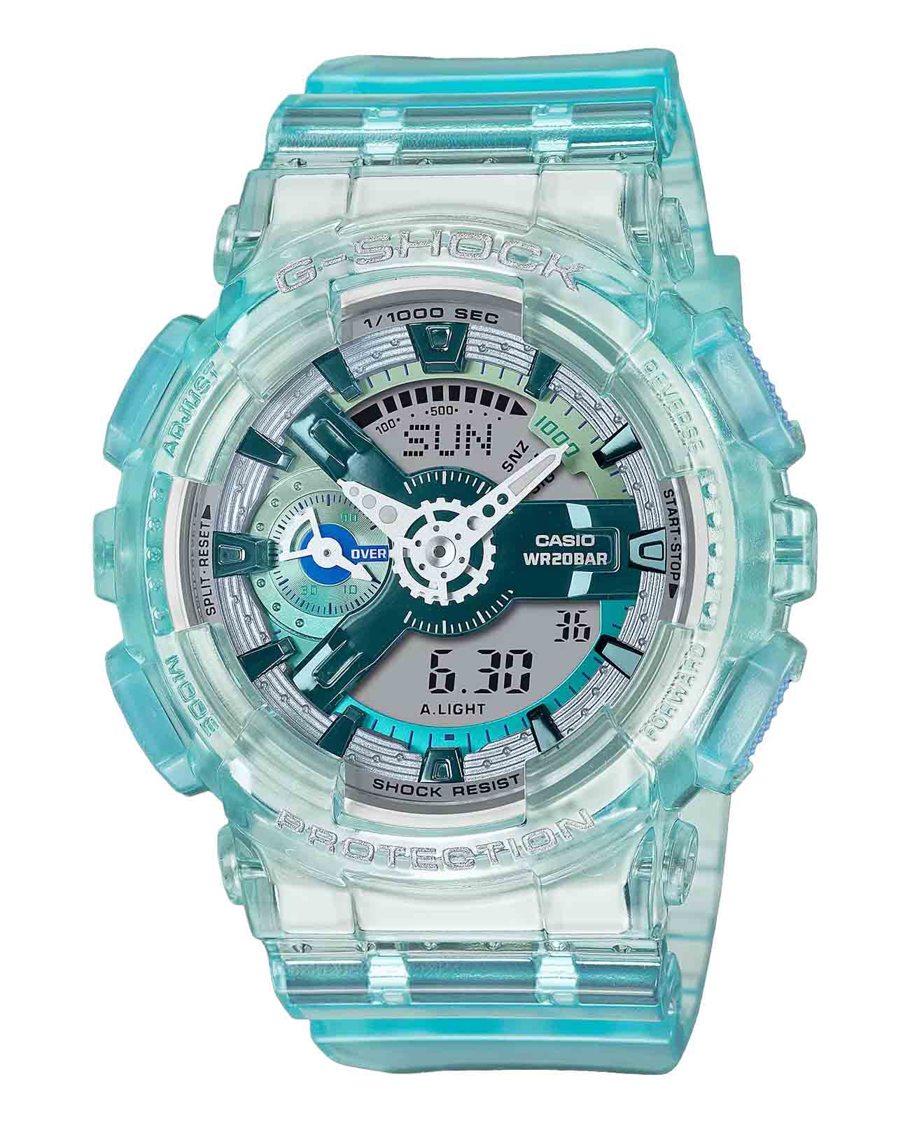 Японские женские часы-хронографХронографФункция позволяет измерять отрезки времени с особой точностью: часы, минуты, секунды. Верным признаком хронографа является наличие на циферблате 3 дополнительных окошек-счётчиков. Casio G-Shock GMA-S110VW-2ADR из коллекции G-Shock. Минеральное стеклоМинеральное стеклоМинеральное стекло представляет собой искусственно выращенный минерал кварца. Такое стекло отличается особой устойчивостью к повреждениям и царапинам. Уступает по некоторым качествам сапфировому стеклу. устойчивое к появлению царапин, обладающее высокой прозрачностью. Ударопрочный корпусУдаропрочный корпусМеханизм заключён в корпус, выполненный из современных материалов, устойчивых к ударам, механическим повреждениям и падению с высоты: инновационный пластик, карбон, нержавеющая сталь, титан. защищает механизм от ударов и вибрации. Светодиодная автоподсветка NeobriteПодсветка NeobriteИспользование светонакопительных составов на основе сульфида цинка или алюмината стронция, яркий свет можно наблюдать на протяжении 6-10 часов после «зарядки» часов около источника света. - при повороте часов в сторону лица подсветка дисплея осуществляется автоматически. Настраиваемое послесвечение 1,5 или 3сек. Мировое времяМировое время Полезное часовое усложнение, отображающее время в основных городах и известных областях по всему миру, оно связано с часовыми поясами, удобно для путешественников и бизнесменов. – 48 городов (29 часовых поясов). СекундомерСекундомерСекундоме́р — прибор, способный измерять интервалы времени с точностью до долей секунды. с точностью измерения 1/100 секунды и измерением до 23 часов 59 минут 59,99 cек. ТаймерТаймерОтсчитывает секунды в обратном направлении в заданном интервале времени. обратного отсчета (диапазон времени 24 часа), автоматический календарь, 12/24 отображение времени. 5 будильниковБудильникБуди́льник — часы, в заданный момент времени подающие звуковой, световой и/или в редких случаях другой сигнал., один с функцией Snooze, ежечасный сигнал. Переключение между домашним и мировым временем. Класс водозащиты: 200 метров, позволит плавать, нырять и заниматься другими водными видами спорта. Ремешок из полимерного материала на стандартной застежке.