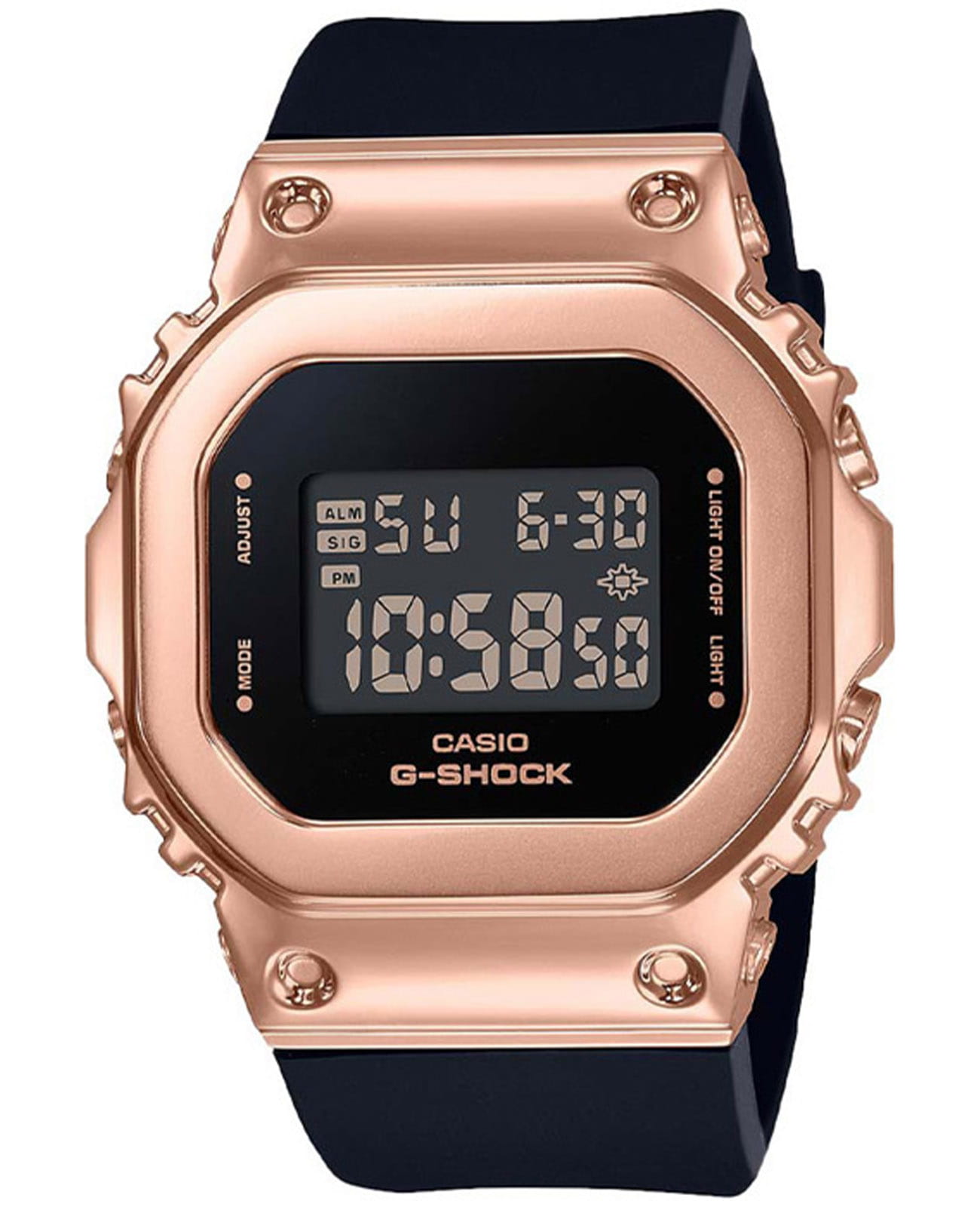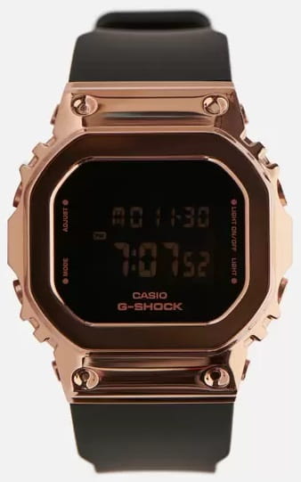 Японские женские часы c хронографомХронографФункция позволяет измерять отрезки времени с особой точностью: часы, минуты, секунды. Верным признаком хронографа является наличие на циферблате 3 дополнительных окошек-счётчиков. Casio GM-S5600PG-1ER из коллекции G-Shock - это практичный и стильный аксессуар с множеством полезных функций. Наручные часы понравятся своим сдержанным и одновременно привлекательным дизайном. Корпус часов изготовлен из нержавеющей стали с IP-покрытиемIP-покрытиеМетод ионного напыления. Демонстрирует повышенную устойчивость к истиранию, окислению и химическим веществам. Под воздействием высокого давления и температуры около 1500°C молекулы металла надёжно соединяются с частицами корпуса часов. и прочного пластика. На компактном циферблате отображается время в 12- и 24-часовом форматах. Есть автоматический вечный календарьВечный календарьКлассическое часовое усложнение, представляющее собой календарь, рассчитанный на несколько лет вперёд (стандартно – до 2099 года). Определяет текущую дату, день недели, месяц. с текущей датой. Благодаря люминесцентной подсветкеЛюминесцентное покрытиеПозволяет считывать показания времени в темноте. Производители наносят на стрелки, часовые индексы, безель или поверхность циферблата светонакопительный состав, дающий холодное свечение., считывать информацию в темноте не составит труда. Есть таймерТаймерОтсчитывает секунды в обратном направлении в заданном интервале времени. с автоматическим повтором. СекундомерСекундомерСекундоме́р — прибор, способный измерять интервалы времени с точностью до долей секунды. измеряет прошедшее время с двумя точностями показаний: 1/100с и 1с. Тип механизма - кварцевый. Ударопрочный корпусУдаропрочный корпусМеханизм заключён в корпус, выполненный из современных материалов, устойчивых к ударам, механическим повреждениям и падению с высоты: инновационный пластик, карбон, нержавеющая сталь, титан. защищает механизм от ударов и вибрации.