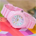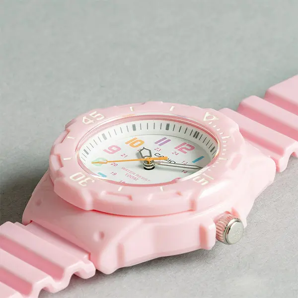 Часы в спортивном стиле полностью подойдут для пляжного отдыха. Корпус и браслет выполнены из высокопрочных полимерных материалов. На аккуратном циферблате расположены временные отметки в виде цветных арабских цифр и миниатюрное окошечко с календарем. Люминесцентная подсветкаЛюминесцентное покрытиеПозволяет считывать показания времени в темноте. Производители наносят на стрелки, часовые индексы, безель или поверхность циферблата светонакопительный состав, дающий холодное свечение.. Высокая водонепроницаемость в 100 WR идеально подходит для плавания в воде. Небольшой вес в 25 грамм не создаст ощущения тяжести при ношении аксессуара.