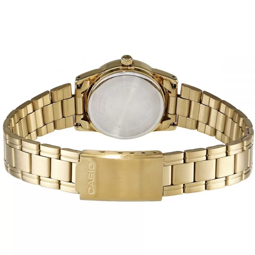 Японские женские часы Casio Collection LTP-V001G-9B с минеральным стекломМинеральное стеклоМинеральное стекло представляет собой искусственно выращенный минерал кварца. Такое стекло отличается особой устойчивостью к повреждениям и царапинам. Уступает по некоторым качествам сапфировому стеклу. изящно смотрятся на запястье, они привлекают классическим исполнением и правильной геометрией. Минималистичная модель станет отличным решением для любого случая: на работу, переговоры с деловыми партнёрами, прогулку с друзьями или праздничный вечер. Отсутствуют лишние детали, что позволяет часам быть актуальными на долгие годы. Корпус выполнен из нержавеющей стали 316L с IP-покрытиемIP-покрытиеМетод ионного напыления. Демонстрирует повышенную устойчивость к истиранию, окислению и химическим веществам. Под воздействием высокого давления и температуры около 1500°C молекулы металла надёжно соединяются с частицами корпуса часов., отличающейся долговечностью и устойчивостью к повреждениям и царапинам. Модель комплектуется надёжным механизмом, точность хода которого составляет +/- 20 сек/мес.Водонепроницаемость 30 метров, позволит защитить корпус от случайных брызг или капель дождя.Стальной браслет на раскладной застёжкеРаскладная застёжкаТакой тип застёжки используется только на браслетах из металла. Она никогда не раскрывается полностью, происходит разделение на 2 и более частей. Раскладывающая застёжка снизит вероятность потери часов к минимуму. с IP-покрытиемIP-покрытиеМетод ионного напыления. Демонстрирует повышенную устойчивость к истиранию, окислению и химическим веществам. Под воздействием высокого давления и температуры около 1500°C молекулы металла надёжно соединяются с частицами корпуса часов..