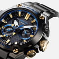 Японские часы Casio G-Shock MRG-B2000B-1ADR из самой престижной коллекции MR-G сочетает исполнение премиум-класса с беспрецедентной прочностью и самым полным функционалом. В дизайне этих часов использован традиционный японский цвет, известный как качи-иро (цвет победы). Темно-синий цвет имеет давнюю историю в Японии - победный цвет качи-иро предпочитался самураями и часто использовался для изготовления доспехов и шлемов. Новая модель MR-G в полной мере отражает сам дух воина-самурая. Комбинированный корпус Casio G-Shock MR-G выполнен из полимерного материала и высокотехнологичного титанового сплава с эксклюзивной финишной обработкой. Подстать дизайну корпуса, хорошо узнаваемому и в тоже время совершенно новому, и современный многофункциональный механизм с системой управления Smart Access, работающий на солнечных батареях и имеющий, помимо привычных секундомера и будильника, технологии Bluetooth® и Multi Band 6, которые поддерживают автоматическую настройку времени по радиосигналам и помощью приложения G-Shock Connected, установленного в смартфоне.